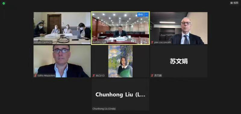 高科切利副校长在致辞中表示在线上见到北语的领导非常荣幸,米兰天主教圣心大学非常重视孔子学院的发展,基于孔院平台,两校开展了学生交换、双学位及博士生联合培养项目,培养了一批优秀的青年人才。高科切利副校长还表示米兰天主教圣心大学治学严谨,在疫情期间制定了一系列政策以保证学校有序运行,同时强调线下学习和交流对学生的发展至关重要,希望在疫情之后恢复和北语的各类交流活动,共同提升办学质量。高科切利副校长感谢了北语和孔院全体人员的辛勤付出,同时认为两校肩负着两国历史、文化、科技等诸多领域交流的责任,愿与北语一道在未来携手并进。