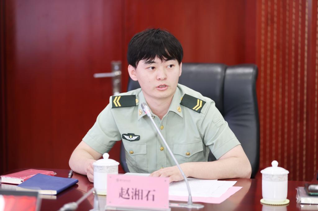 学工部副部长张洋对一年来北语征兵工作开展情况进行了简要汇报。2021年9月至今,北语共有12名学生光荣入伍,再次超额完成征兵任务,入伍学生综合素质提升明显,应届毕业生入伍数量不断增加,征兵育人作用突出,退役大学生士兵培养逐步完善,形成了以“体系完善,动员深入,全员覆盖,扎实做细”为特征的我校征兵工作特色优势做法,北语的征兵工作、国防教育工作影响力日益增强,获得了上级教育部门和兵役管理部门的认可。
