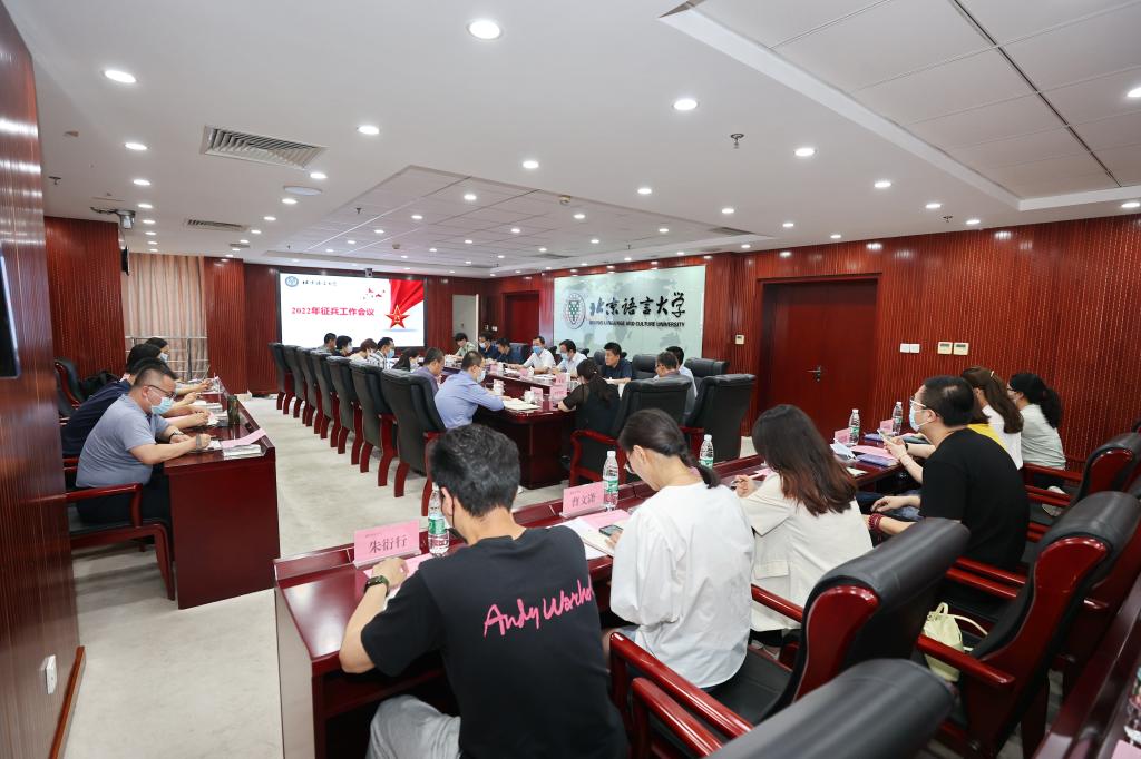倪海东书记首先肯定了近年来我校征兵工作取得的显著成绩,代表学校党委对相关部门及老师们的辛勤付出表示感谢。针对当前的征兵工作,倪海东书记指出,我国面临百年未有之大变局,站在开启全面建设社会主义现代化国家新征程新起点,构筑强大的国防,维护我国国家安全,是一项生死攸关的工程,而国防军队现代化建设急需大批在校大学生这样的高素质兵源,做好大学生征兵工作意义深远,是落实党和国家的要求,也是高校义不容辞的重要责任。倪书记对下一步征兵工作提出了四点要求和期望:一是高度重视、主动作为,准确掌握并适应一年两次征兵对征集工作、征集对象、征集进度的要求,及时了解每年的优抚政策,不断提升征兵工作质量;二是提前谋划,精准征集,精准定位入伍意向学生,逐个谈话发动,努力实现兵员征集数量、质量“双提高”;三是积极宣传,做好服务。要继续完善具有北语特色的征兵工作模式,广泛宣传,深入发动,鼓励学生在军营建功立业,严格落实参军入伍优待政策,让学生安心入伍、放心入伍;四是征兵育人,立德树人。各成员部门、培养单位要充分认识到完成好征兵工作这项政治任务对服务高校立德树人根本任务的重要意义,将兵员征集与育人工程紧密结合,善于用好征兵工作这个思想政治教育的特色抓手和重要载体。