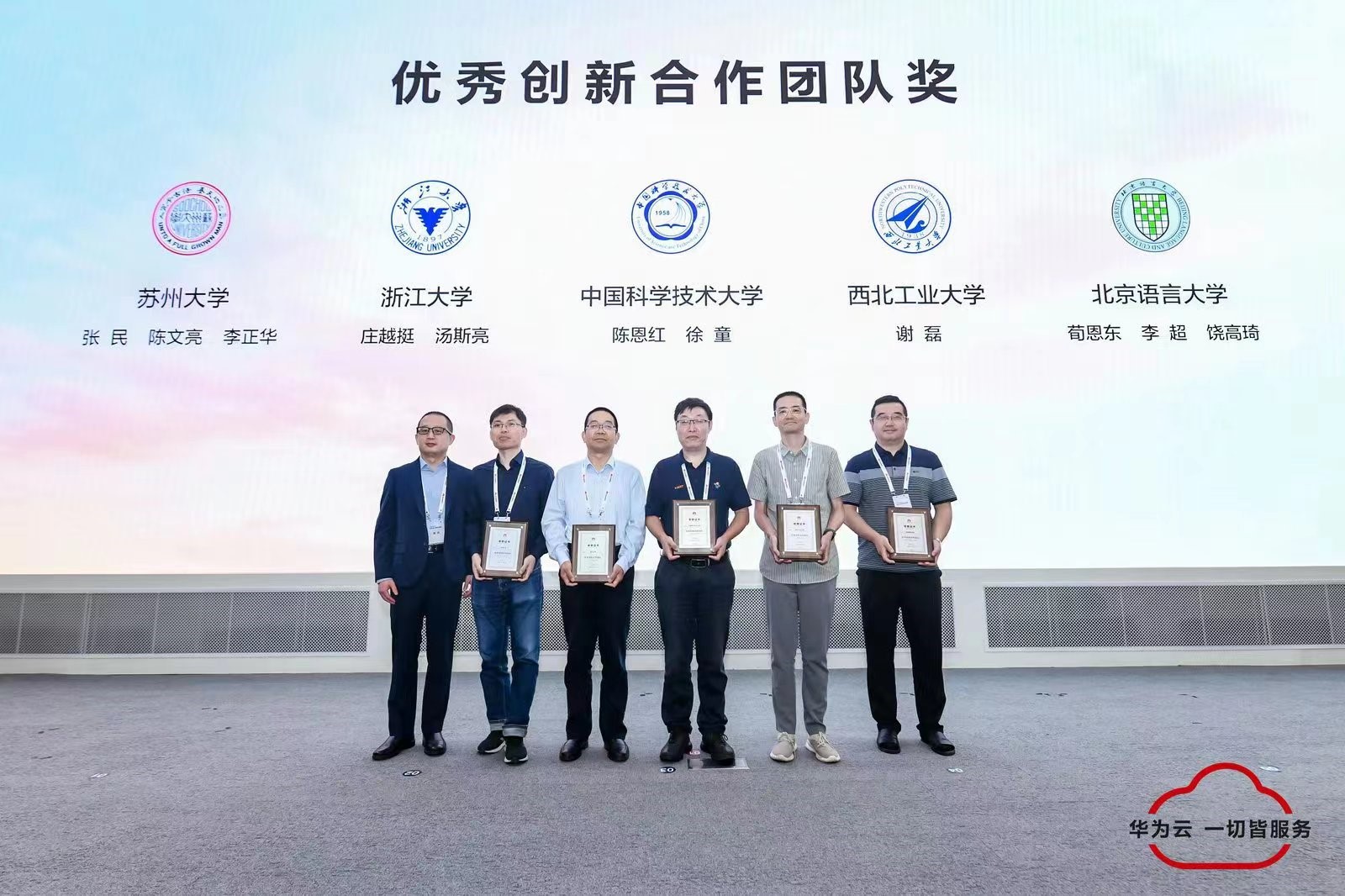 近年来,华为云积极与学术界进行思想碰撞,和多位知名教授、学者携手开展科研项目并取得较大成果。会上,来自北京语言大学、中国科学技术大学、西北工业大学、浙江大学、苏州大学五个高校获颁“优秀创新合作团队”。