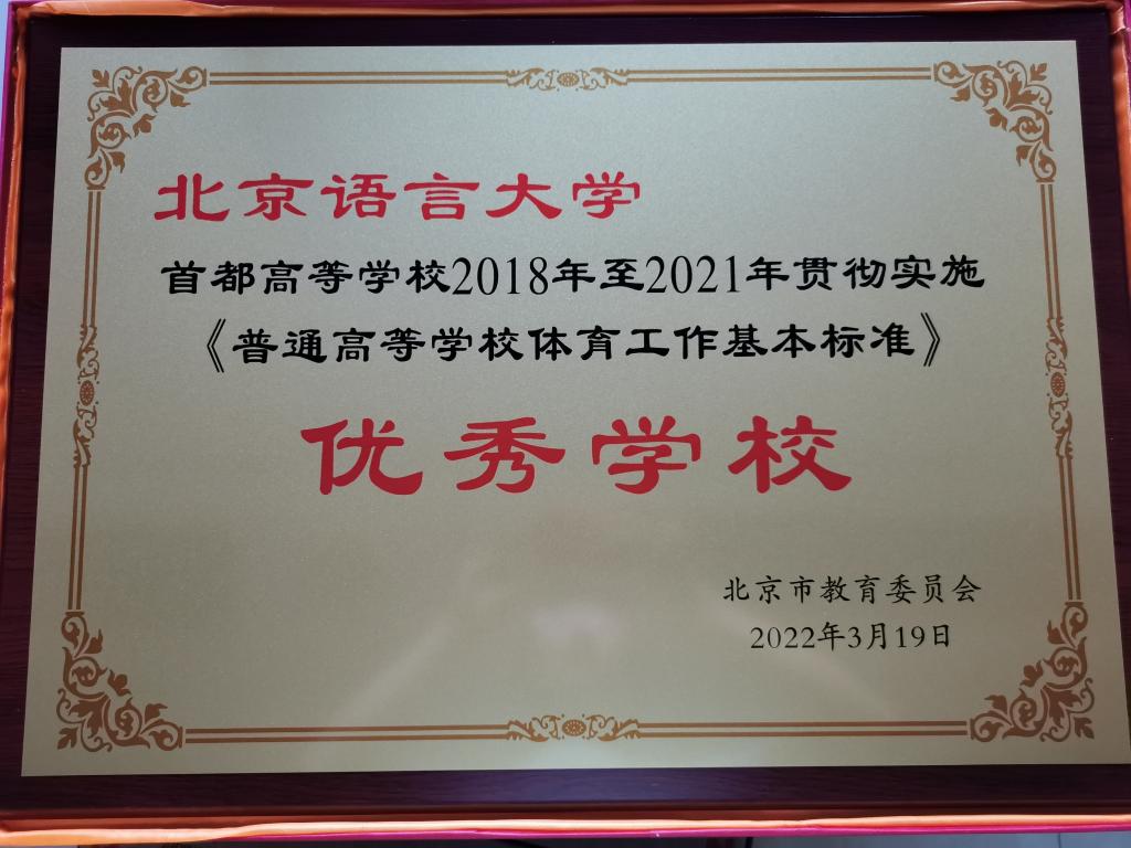 殊荣来之不易,优秀学校奖是以《高等学校体育工作标准》为依据,由北京市教委对首都高等学校2018年至2021年开展的学校体育工作进行评估。经过层层筛选与重重考核,从学校自评自查到市级专家分层打分、严格筛选,我校是以优异成绩从北京市78所参评高校中脱颖而出。在2022年1月中旬至3月初期间,我校作为拟获得评估等级的学校接受北京市教育委员会的复核。最终,在我校领导的高度重视与指导下、我校体育教学部的辛勤劳动和努力奋斗下,我校体育教学工作在本次评估中位列前茅,荣获“优秀学校”奖!这已是我校第二次在评估中荣获“优秀学校”光荣称号。