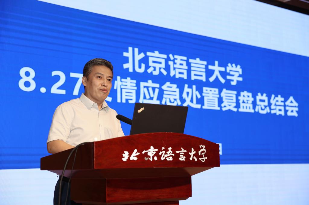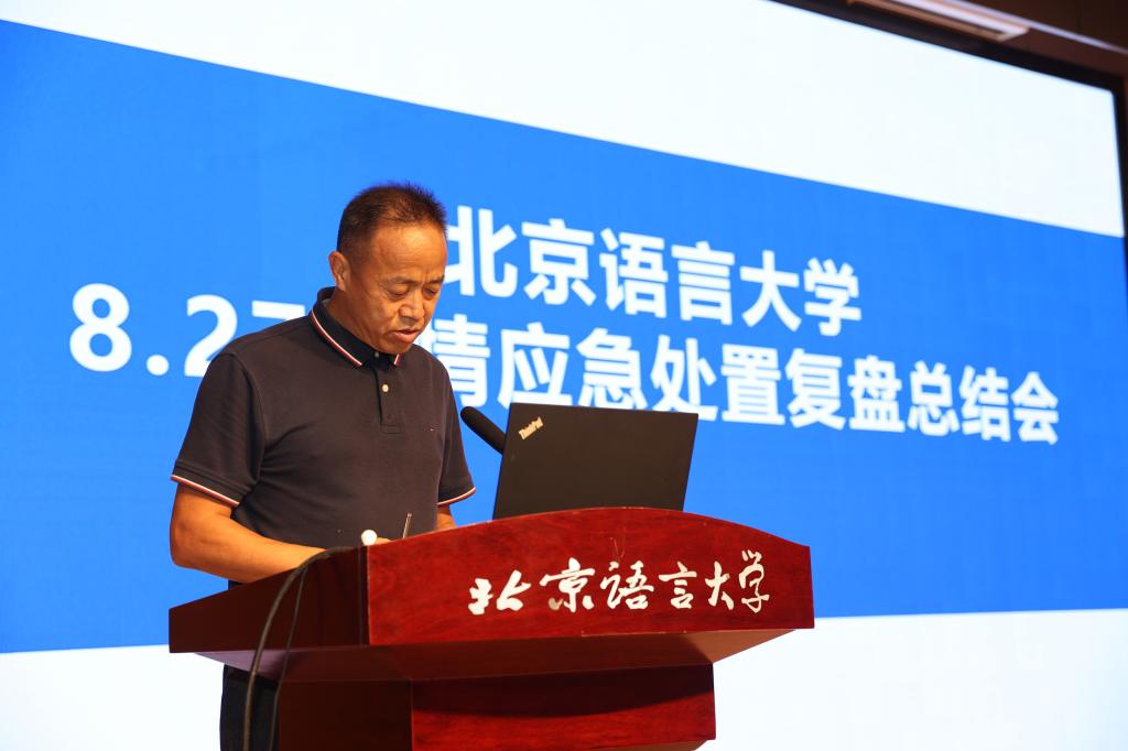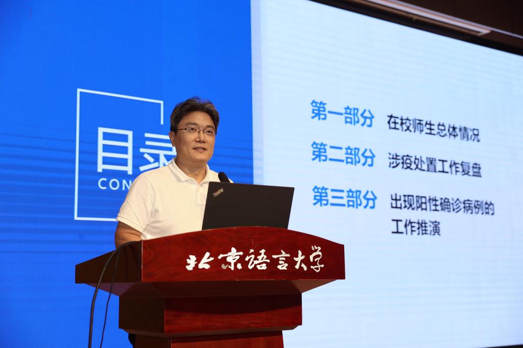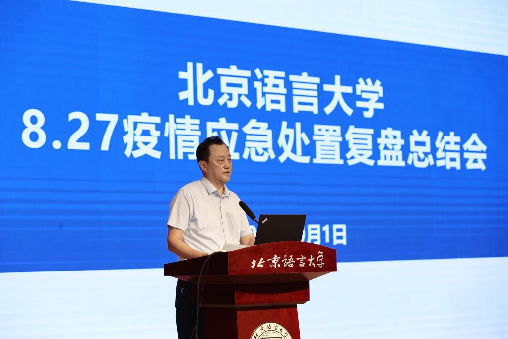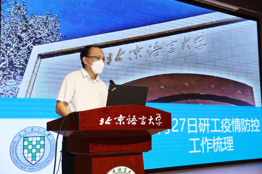 倪海东书记总结了学校8.27疫情应急处置工作并指出,学校指挥体系通畅,干部担当作为,服务保障有力,师生配合支持,校地协同顺畅,舆情平稳正面,充分展现出北语人团结的力量、奋进的力量和共同体的力量,相关工作也得到了上级部门和社会上的广泛认可。倪海东书记也对学校一段时间以来的疫情防控工作进行了整体回顾,对全体师生员工在疫情大考面前表现出的担当奉献精神表示高度肯定,对大家给予学校的支持和理解表示由衷的感谢。会上,倪海东书记还对校庆相关工作、党建和思想政治工作基本标准入校检查、校园修缮工程和环境治理等工作进行了说明。最后,倪海东书记对继续做好学校疫情防控和安全稳定工作提出四点要求,一是提高政治站位,全体师生员工要积极配合并参与到疫情防控工作中来。二是强化责任意识,严格按照要求做好相关工作,确保校园安全稳定和师生身心健康。三是精准有效做好基础数据统计工作,为科学做好疫情防控工作提供准确的“数据源”。四是充分做好师生思想政治工作,引导师生理解和支持各项防疫措施。倪海东书记希望各单位把今天的会议精神和部署要求传达给全体师生,激励大家继续以昂扬奋发的精神面貌和严谨认真的工作态度做好疫情防控和其他各项工作。