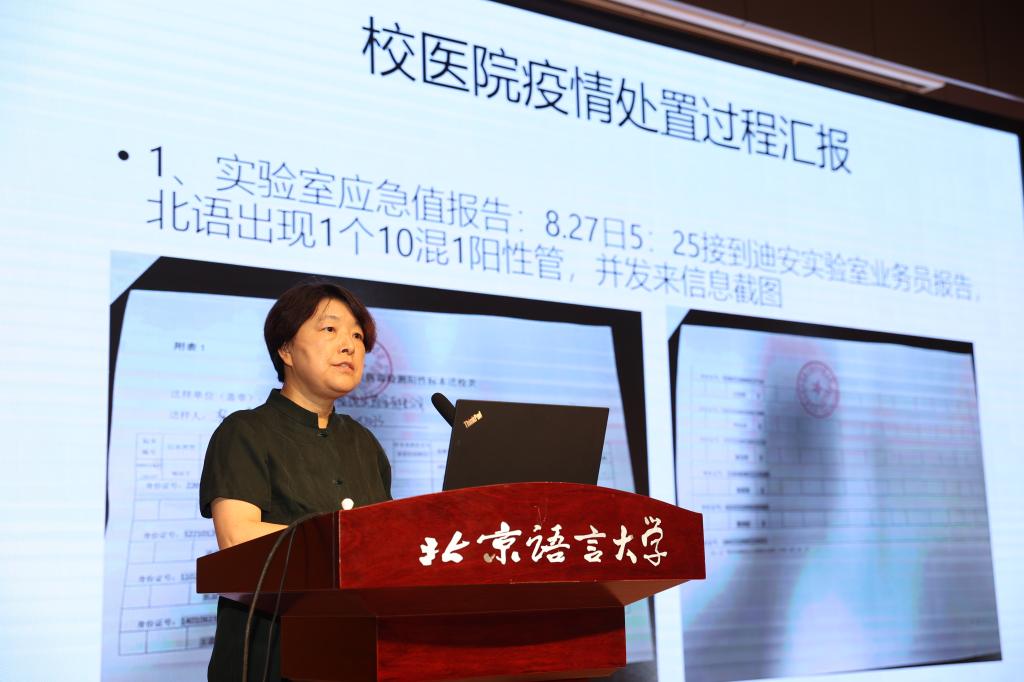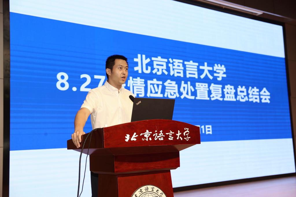 校医院、学生处、研究生院、保卫处和后勤服务集团负责人分别从各自工作的角度,对8.27疫情应急处置工作进行了回顾总结、经验分享和问题反思,均表示在今后的工作中要进一步提高政治站位,强化责任落实,加强数据摸排,确保更加有力有序、科学精准地做好学校疫情防控和安全稳定工作。