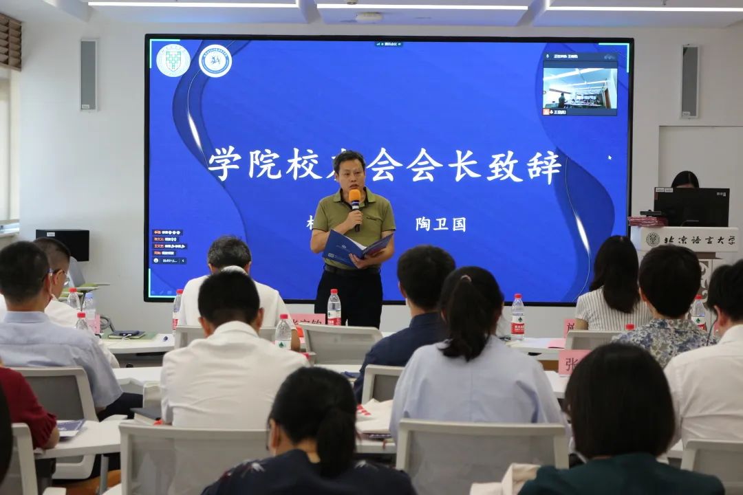 学院校友会名誉会长储诚志、会长陶卫国先后致辞。他们充分肯定了母校的建设发展成就,衷心祝愿母校在未来蓬勃发展,再创辉煌,并表达了共同建设好学院校友会的信心和决心。