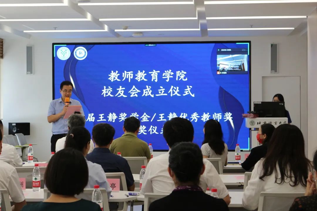 北京语言大学教师教育学院自成立后便开始筹备成立校友会,在学校领导的大力支持和校友办的热情指导下,学院组建了校友会筹备委员会,对校友会名誉会长、会长、副会长、秘书长、副秘书长人选进行了意见征询和研讨。经过精心筹备,9月16日下午,教师教育学院校友会成立仪式暨首届王静优秀教师奖/王静奖学金颁奖仪式在图书馆日新讲堂举行。北京语言大学副校长、北京语言大学校友总会副会长张宝钧教授,校友工作办公室主任马小垒,教师工作部部长展明锋,学生处副处长(主持工作)武玉洲,教育基金会副主任石鑫,北京语言大学企业家校友会会长黄小治,北京谦映像文化传媒有限公司副总经理、校友陶卫国,国合新力(北京)基金管理有限公司副总裁、校友钱军,以及部分海内外校友代表出席活动。活动先后由北京语言大学语言资源高精尖创新中心副主任、校友刘晓海,教师教育学院院长施家炜,教师教育学院党委书记程娟主持。