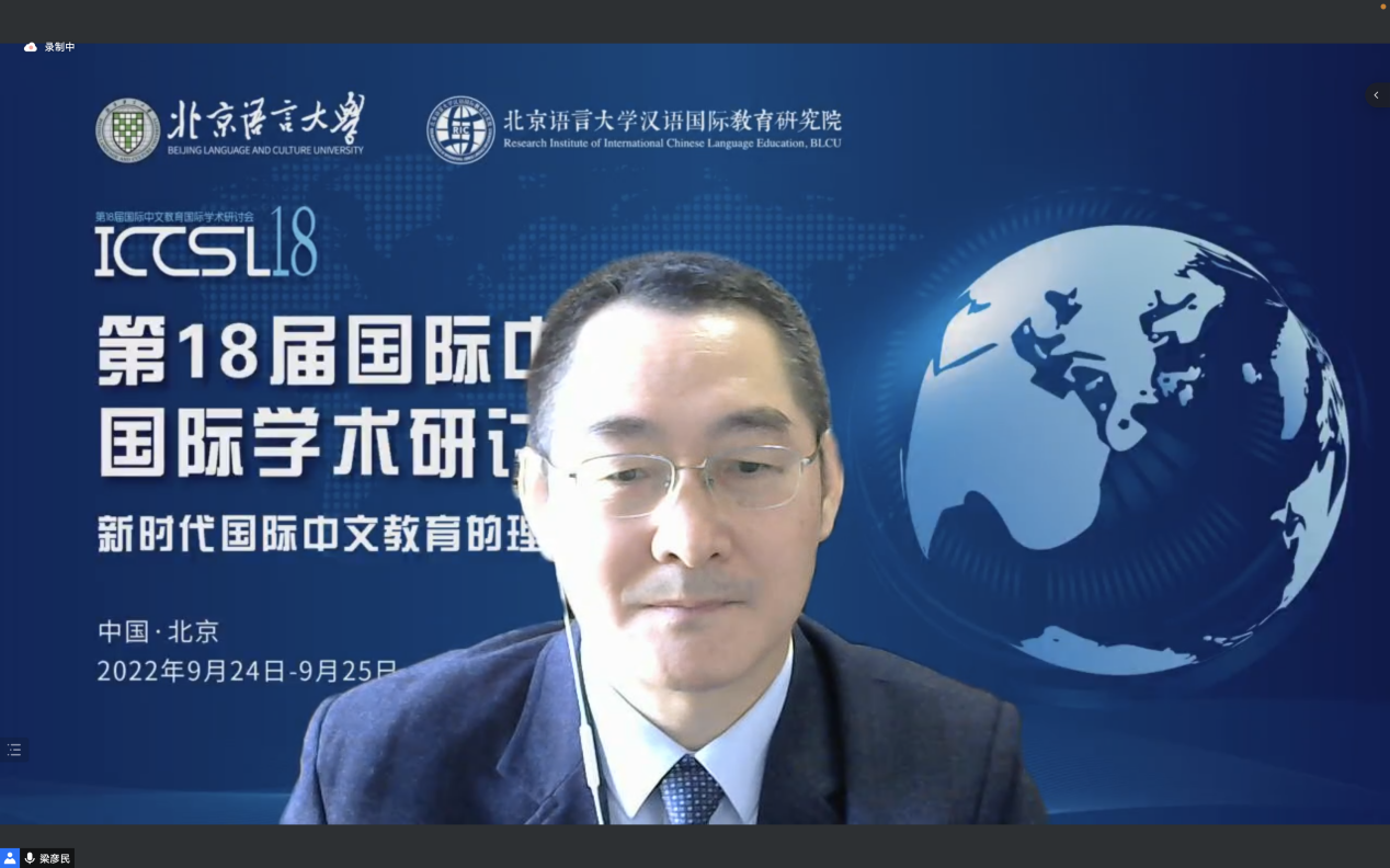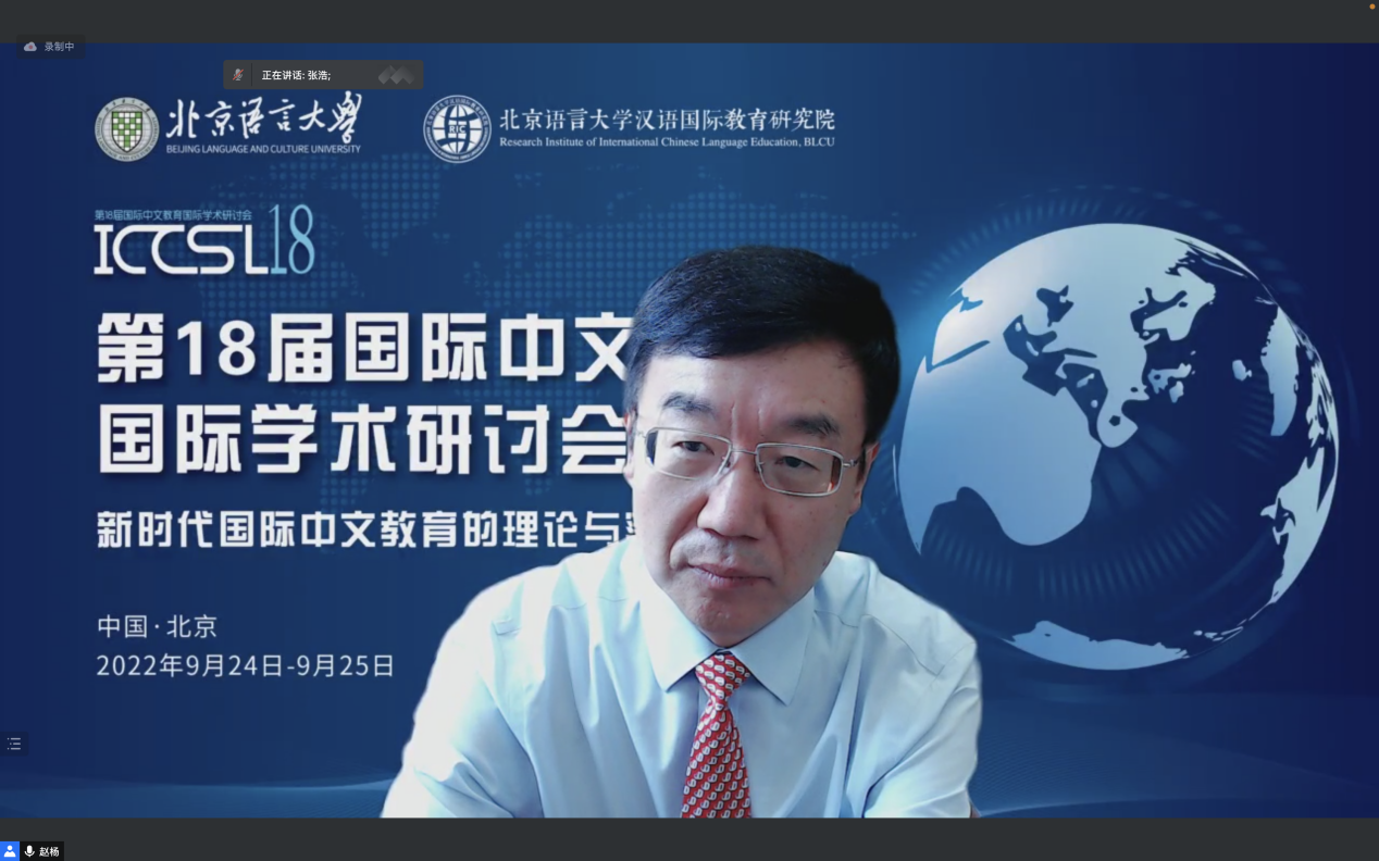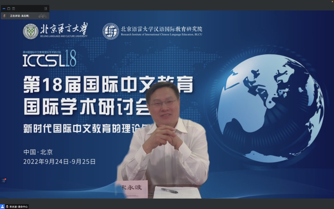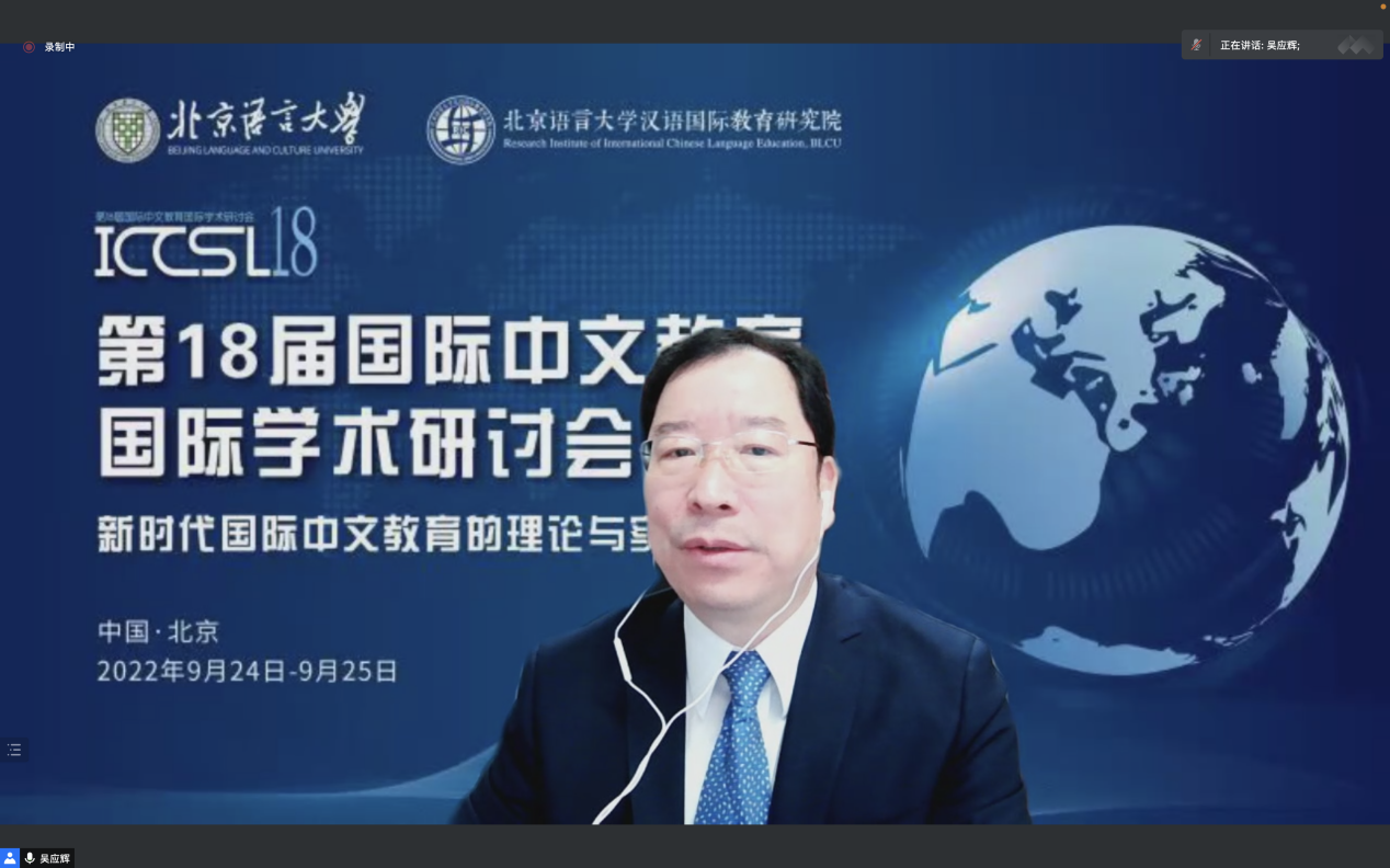 9月24-25日,由教育部人文社科重点研究基地北京语言大学汉语国际教育研究院/华文教育研究院和新西兰梅西大学人文学院联合主办的第18届国际中文教育学术研讨会以线上方式在北京语言大学隆重举办。来自全国110多所高校和研究机构的800多位专家学者及高校师生参加了会议。北京语言大学党委副书记魏晖、教育部中外语言合作交流中心党委副书记宋永波、世界汉语教学学会会长、天津师范大学校长钟英华、新西兰梅西大学人文学院Kerry Taylor教授出席了开幕式并致辞,会议由北京语言大学汉语国际教育研究院院长吴应辉教授主持。