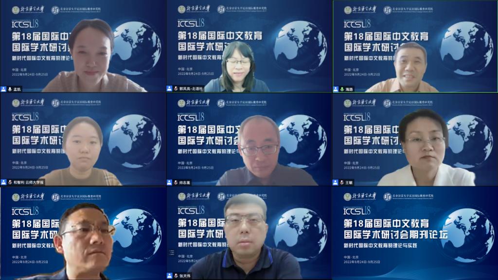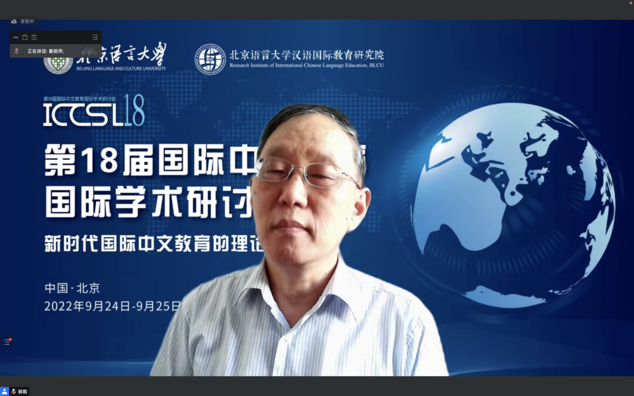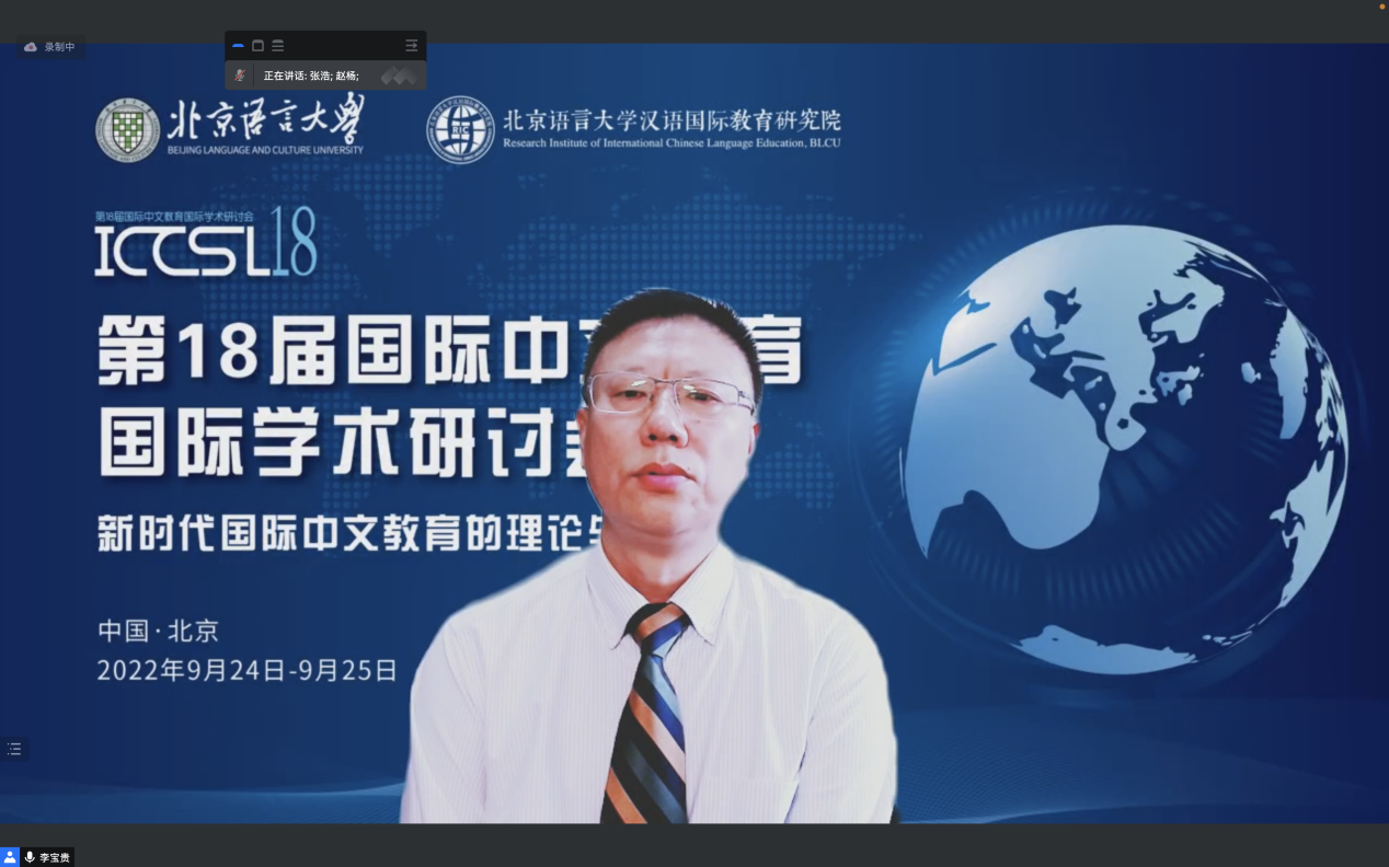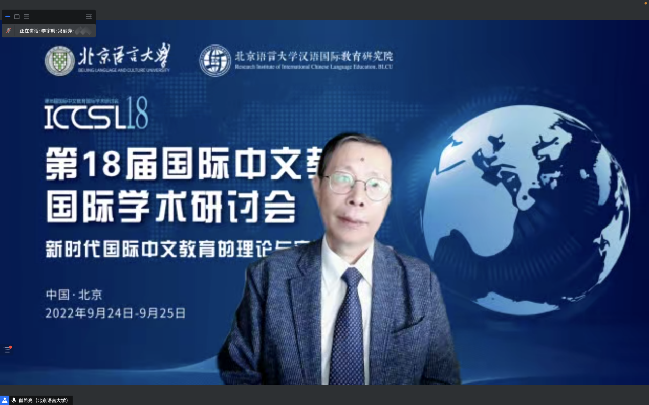 9月24-25日,由教育部人文社科重点研究基地北京语言大学汉语国际教育研究院/华文教育研究院和新西兰梅西大学人文学院联合主办的第18届国际中文教育学术研讨会以线上方式在北京语言大学隆重举办。来自全国110多所高校和研究机构的800多位专家学者及高校师生参加了会议。北京语言大学党委副书记魏晖、教育部中外语言合作交流中心党委副书记宋永波、世界汉语教学学会会长、天津师范大学校长钟英华、新西兰梅西大学人文学院Kerry Taylor教授出席了开幕式并致辞,会议由北京语言大学汉语国际教育研究院院长吴应辉教授主持。