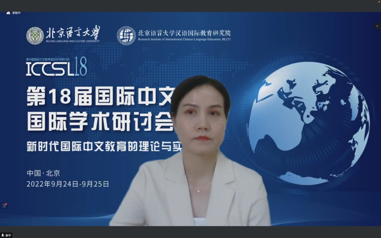 新西兰梅西大学人文学院Kerry Taylor教授以远程视频的形式向大会发来诚挚的祝贺,Kerry Taylor教授表达了对中国的想念,回顾了新西兰梅西大学和北京语言大学多年来在学术研究方面的交流与合作。Kerry Taylor指出,最近的三年对我们来说都非常艰难,在疫情背景下能够继续合作实属不易,我们仍然面临着很多挑战,梅西大学人文学院将进一步发展与北京语言大学更广泛的合作,希望明年我们能够在线下再次共同举办学术盛会。