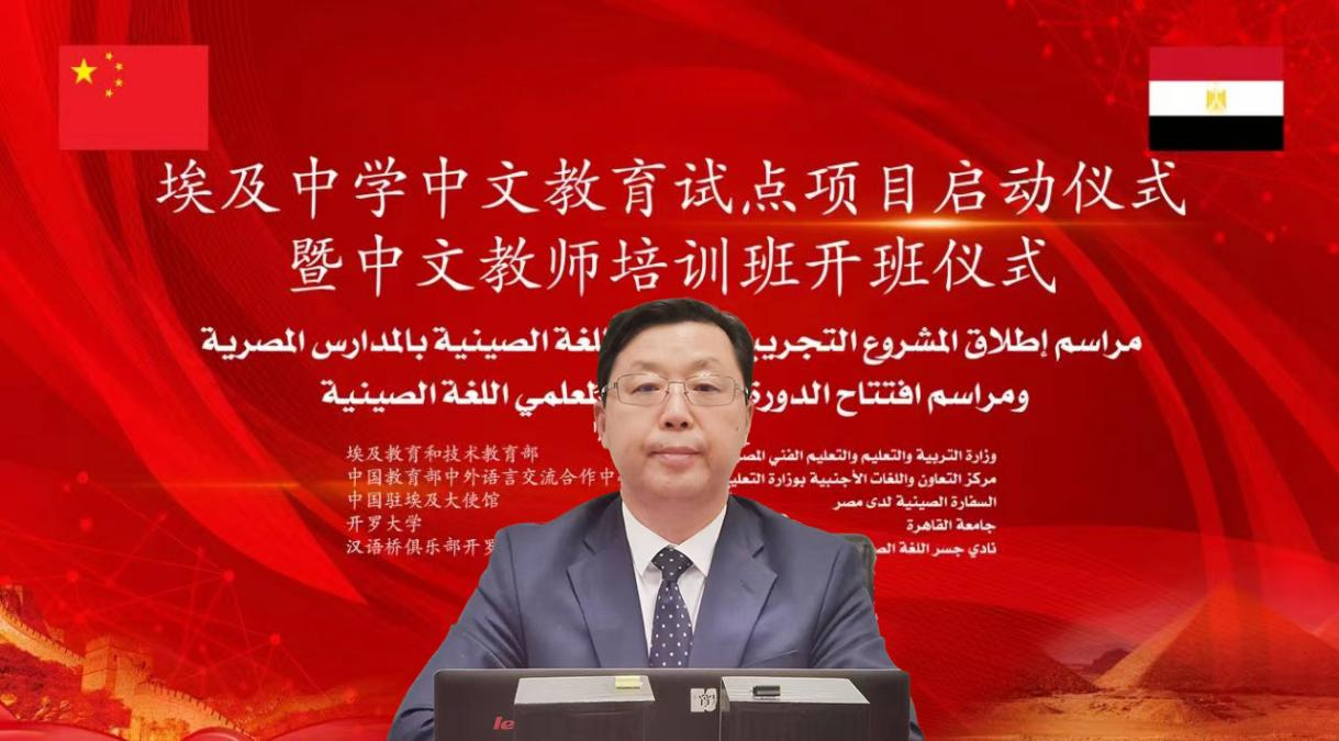 中外语言交流合作中心主任马箭飞对埃及中学中文教育试点项目正式启动表示热烈祝贺。他表示,在埃及中学中文教育试点项目推进过程中,中埃双方密切沟通协作,在制定教学大纲、编写本土教材、选聘中文教师、搭建教学平台等方面做了大量卓有成效的工作。此次中学中文教育试点项目的启动必将为促进两国教育领域深入合作、推动中埃全面战略伙伴关系注入新活力,也必将为更多阿盟国家开展中文教学提供有益经验。