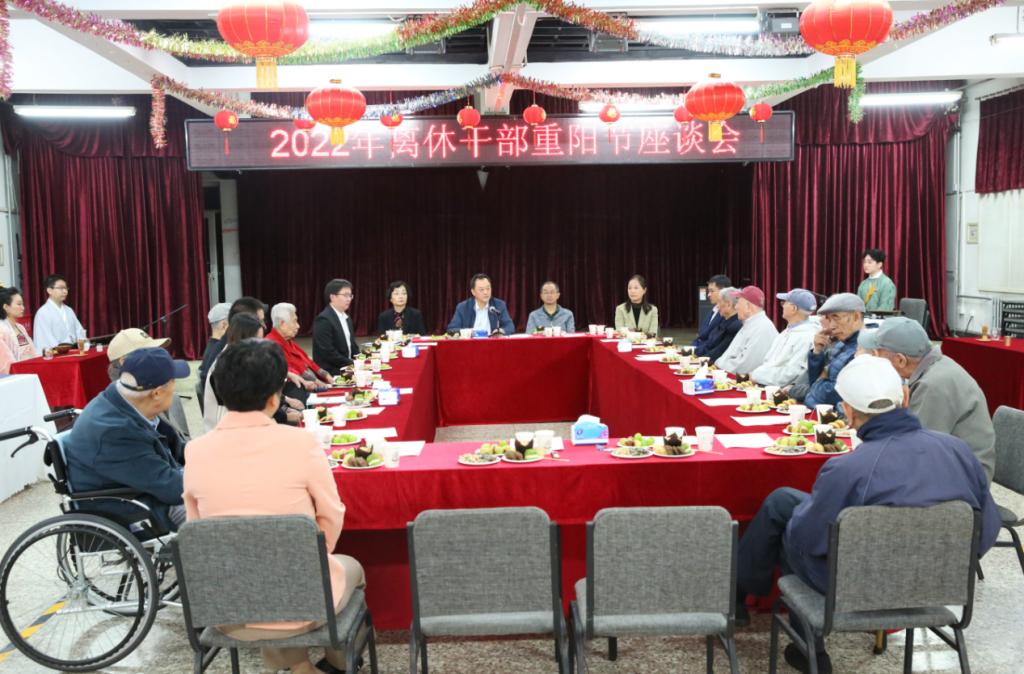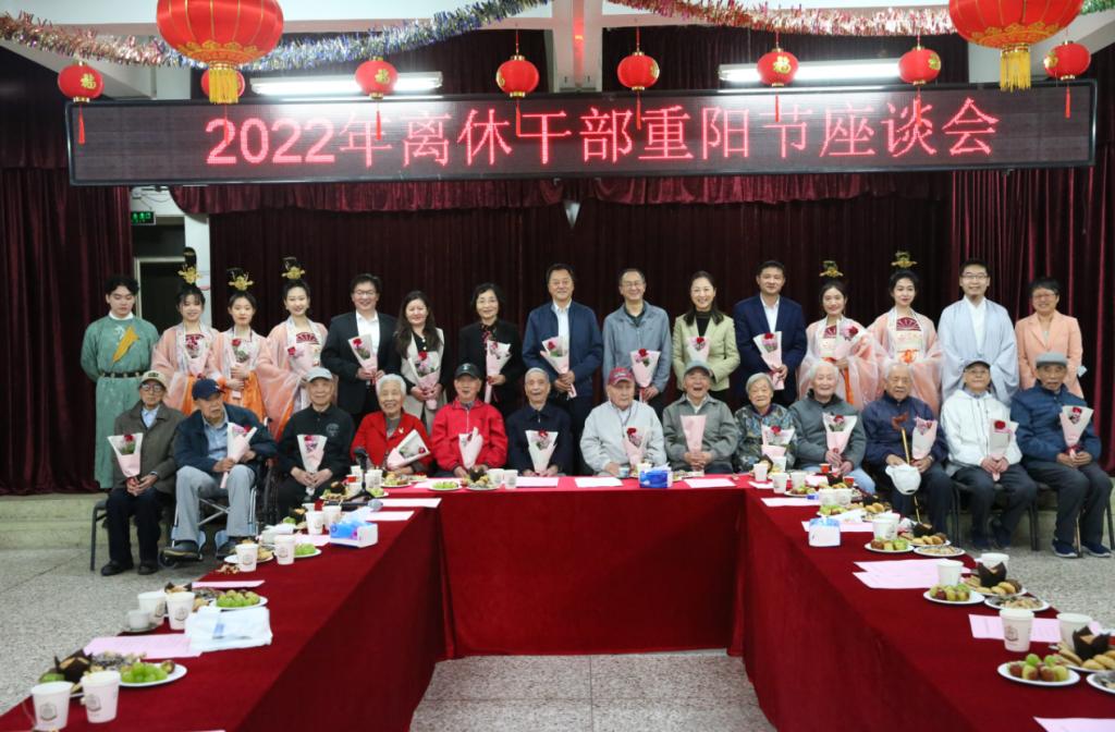 金秋送爽,丹桂飘香,在2022年重阳节到来之际,学校在多功能厅举办离休干部重阳节座谈会。10月4日上午,多功能厅欢声笑语,气氛热烈,学校党委书记倪海东、校党委副书记魏晖与离休老干部欢聚一堂,共度重阳佳节。党委常委、组织部部长聂丹,党委常委、统战部部长吕静,学校办公室主任李志坚,党委宣传部常务副部长黄展,党委教师工作部部长展明锋,离退休工作处党委书记崔克娟、处长罗立祥、党委副书记李学军、副处长金尧以及全体工作人员参加本次活动。座谈会由离退休工作处处长罗立祥主持。