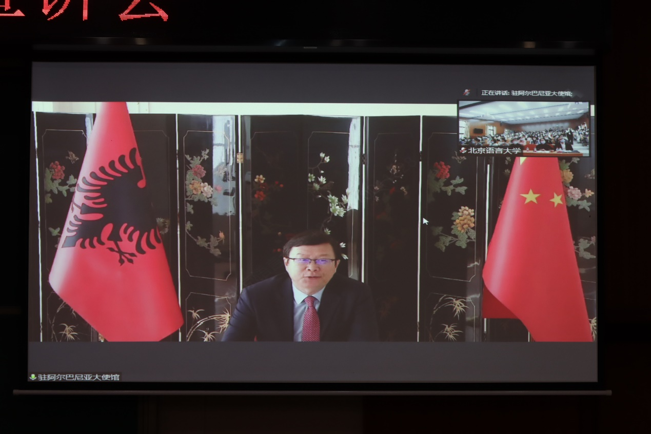 宣讲会上,我校1987级对外汉语专业校友、驻阿尔巴尼亚大使周鼎以大使和校友的双重身份,结合个人驻外工作经历,从两个方面分享了外交工作相关内容。在回答为什么要报考外交部这一问题上,周鼎大使指出外交部可以为青年人提供施展才华的大舞台,可以为事业发展提供良好条件,并能够为青年人安居乐业提供保障。在关于外交官应具备的能力素质方面,周鼎大使指出外交官首先要政治过硬,还应具备深厚的知识储备与文化底蕴,同时还应有较强的纪律意识。他欢迎北语学子报考外交部,在祖国的外交事业中书写不一样的青春,绽放不一样的精彩。