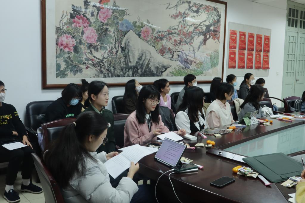 为深入领会党的二十大精神,做好党的二十大专题学习,夯实“党建带团建,团建带班建”工作基础,11月8日,校长刘利深入基层,参加2019级汉语国际教育团支部“学习贯彻二十大,北语青年勇当先”主题团日活动。本次活动由2019级汉语国际教育2班团支部牵头策划,联合2020级汉语国际教育2班、2021级汉语国际教育2班团支部共同承办。教师教育学院党委书记程娟、本科生辅导员曹文潇出席。