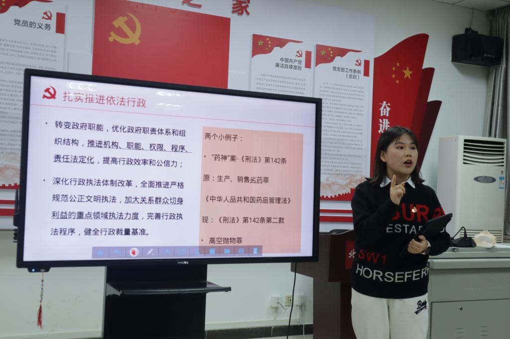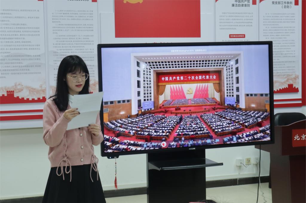 活动伊始,刘露含同学带领同学们沿着二十大报告脉络,回顾了新时代十年来的伟大成就。在过去,一代代中国共产党人始终坚持不忘初心,牢记使命,六位同学结合实践经历、家乡变化等内容,将“六个必须坚持”融入生活细微之处,让使命与责任变得可亲可感。