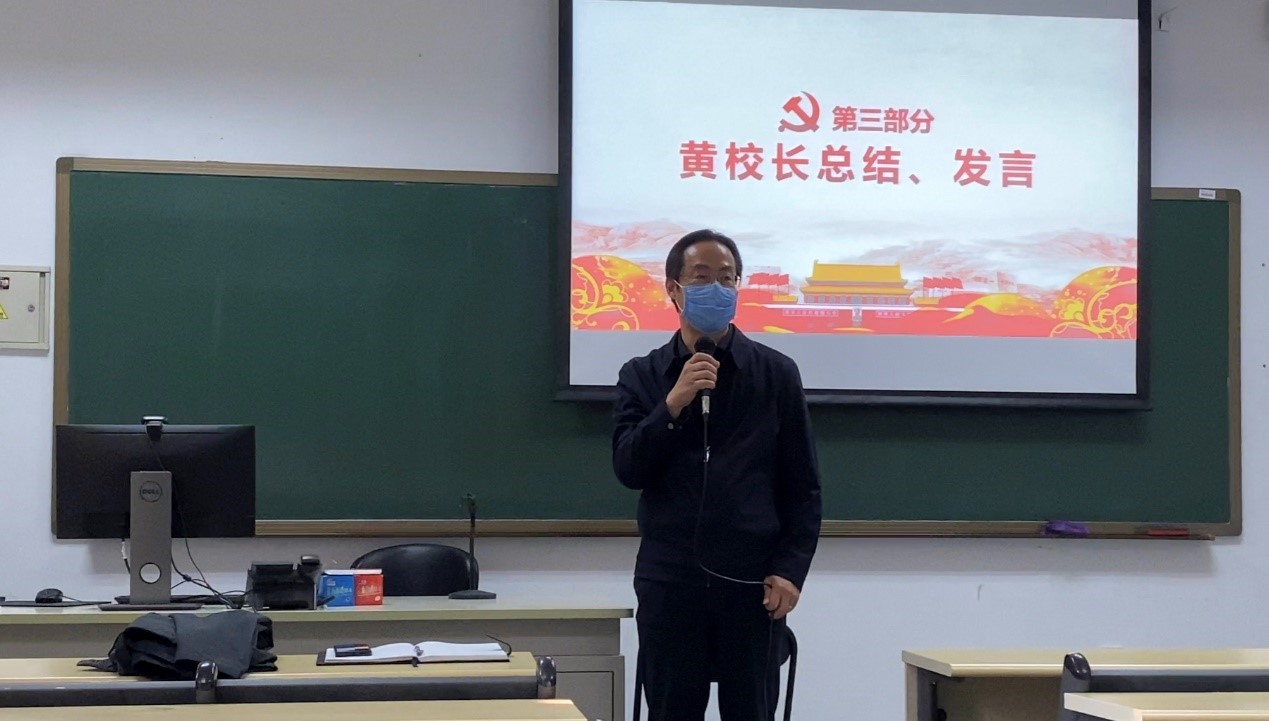 黄益方副校长对本次党日活动的组织策划和同学们的学习热情给予了高度的肯定,并对同学们了提出希望和建议。希望同学们能从学习贯彻党的二十大报告中获得持续奋斗的目标力量,为国家、社会的发展做出更大贡献。了解到支部许多同学都比较关注当下周边疫情情况,黄益方副校长还向支部同学们提出两点建议。一是在疫情防控中,党员一定要发挥好表率带头作用,加强与学校、学院的沟通;二是希望同学们调整好心态,充分信任学校的科学决策,珍惜好难得的大学生活。