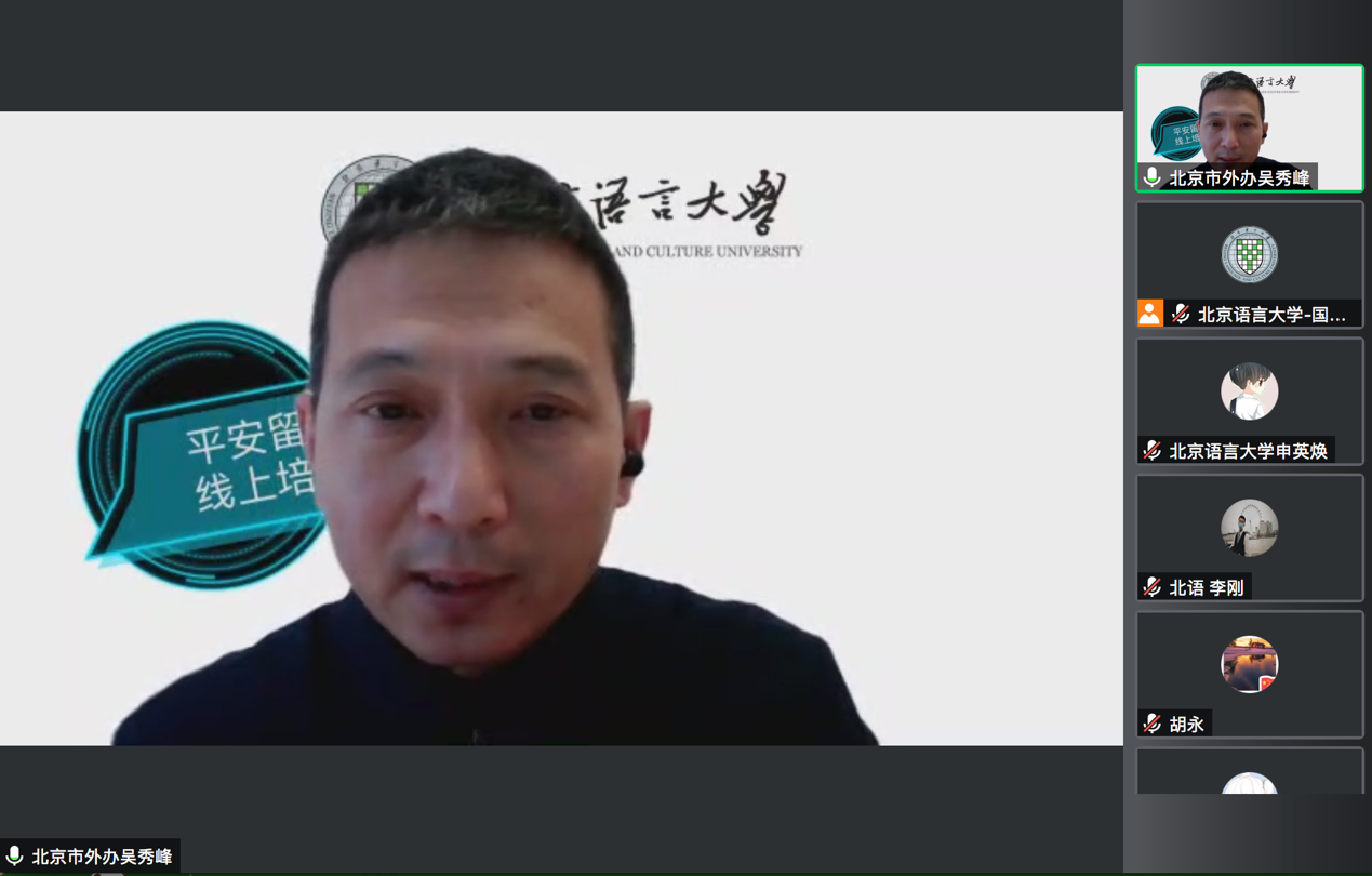 11月26日,由教育部国际合作与交流司主办、教育部留学服务中心承办、北京语言大学协办的2022年教育部“平安留学”行前培训会圆满结束。本年度出国留学行前培训会以线上方式进行,共开设讲座十场,主题涉及跨文化交际、心理调节、海外领事保护、学术准备、思想政治和多国别文化及安全注意事项等。