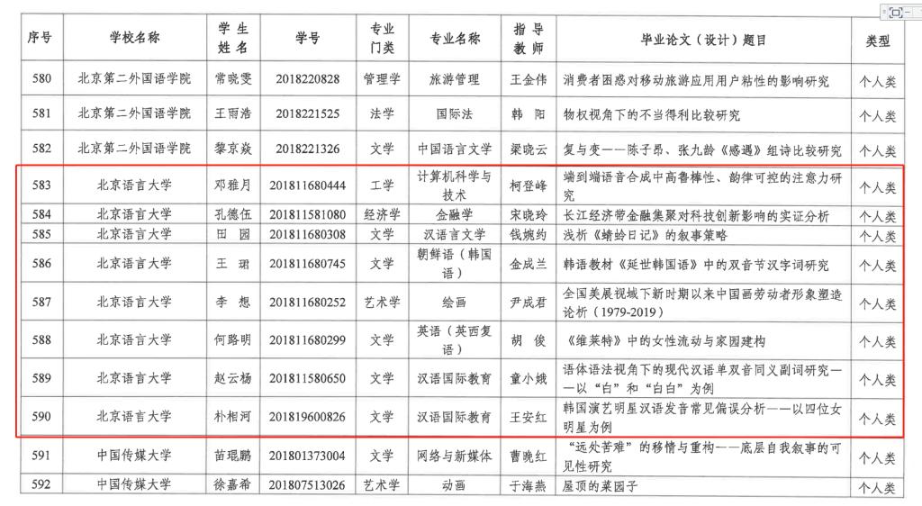 日前,北京市教育委员会公布2022年北京市普通高等学校优秀本科生毕业设计(论文)名单,我校邓雅月等8名同学的毕业论文入围该名单。