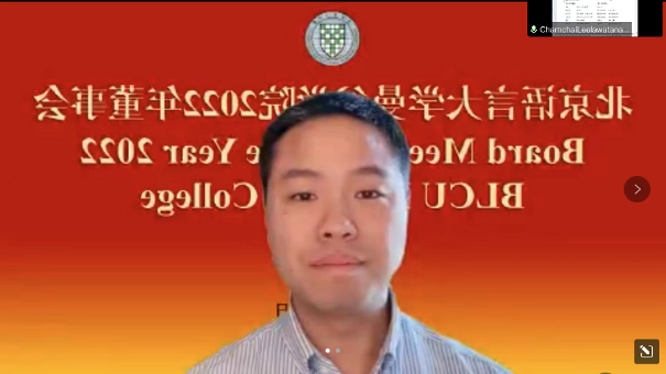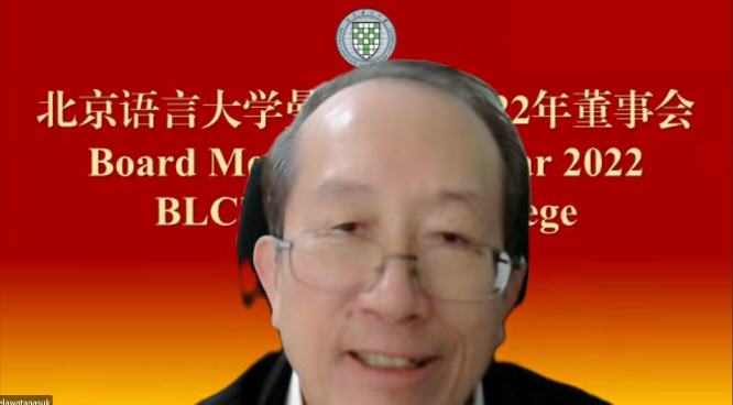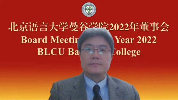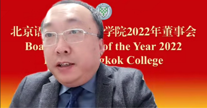 洪百川主席表示,今年已经是第三次在线上召开董事会,在疫情的冲击下,曼谷学院一直在积极的寻找新的发展机遇,通过调整授课方式、开展包括高管班、商务汉语、拼音班等各类非学历课程,从而满足不同社会人士的需求。作为曼谷学院的泰国合作方,易三仓商业学院即将进行办学许可范围的调整,但这未来不会影响到与北语共建的曼谷学院。洪主席最后再次表达了对北语成立60周年的祝贺,祝愿北语的事业不断发展壮大。