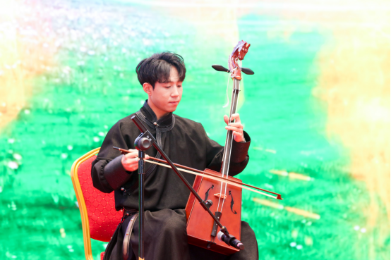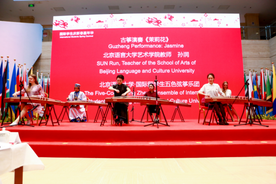 在“请您欣赏”环节,北方昆曲剧院国家一级演员翁佳慧、国家二级演员朱冰贞和吴思、国家京剧院国家二级演员杨超、古琴非遗传承人、青年古琴演奏家胡术文、青年马头琴演奏家李那日苏和北京语言大学青年教师周珂、孙润及国际留学生五色弦筝乐团奉献了精彩的演出。意象高远、情景相融的古琴曲《流水》传递着人与自然的和谐气象;箜篌曲《楼兰》让人梦回传说中的神秘古国。国际留学生演奏的古筝《茉莉花》用优美的旋律表达了对中国文化的热爱;名家们表演的京剧《将相和》《贵妃醉酒》、昆曲《游园·惊梦》和马头琴演奏《万马奔腾》演绎出中国的历史传说和情感文化。