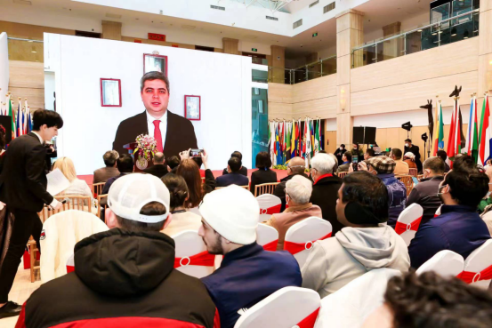格鲁吉亚驻华大使阿尔赤·卡岚第亚讲述了格鲁吉亚政府对于教育和⼈才培养的重视,希望将来有更多的格鲁吉亚留学生来华学习,为中格教育交流合作贡献力量,把中国和格鲁吉亚的命运共同体建构得更加牢固。