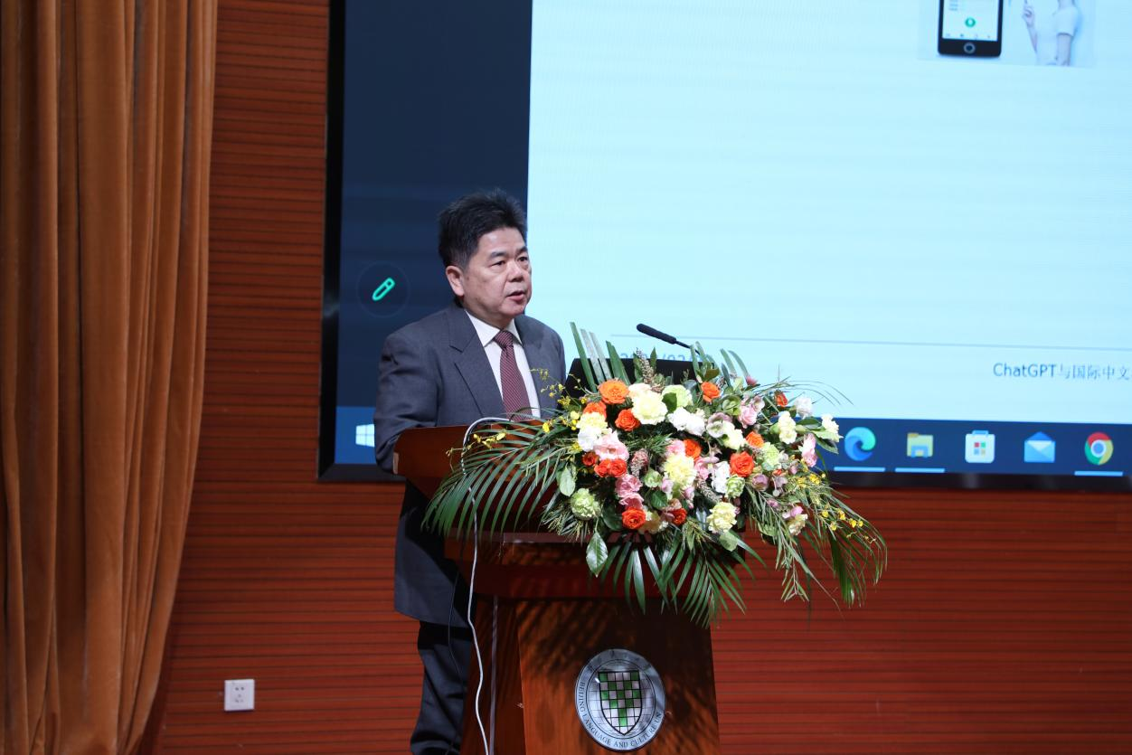 汉考国际教育科技(北京)有限公司中文学习测试创新中心和国际中文考试运营总监刘小龙先生担任了第二个专题讨论的主持人,并做了题为《中文考试:拥抱、训练、防范ChatGPT,与AI共同成长势在必行》的报告。首都师范大学文学院博士生导师、国家语委科研基地中国语言智能研究中心副主任史金生教授、北京语言大学语言资源高精尖创新中心首席专家、信息科学学院张劲松教授、美国加州波莫纳学院亚洲语言系中文项目负责人萧峰副教授、北京语言大学汉语国际教育研究院饶高琦博士、北京语言大学高级翻译学院笔译系主任、中国翻译协会本地化服务委员会副秘书长韩林涛博士分别以《面对ChatGPT,国际中文教育的变与不变》《ChatGPT与二语语音辅助学习技术》《ChatGPT 对中文二语教学评估的挑战》《柴语生(ChatGPT)在国际中文教育中的工具化设想》和《将ChatGPT与第二外语线上教学平台深度融合的初步探索和功能演示》为题,汇报了自己的研究成果。