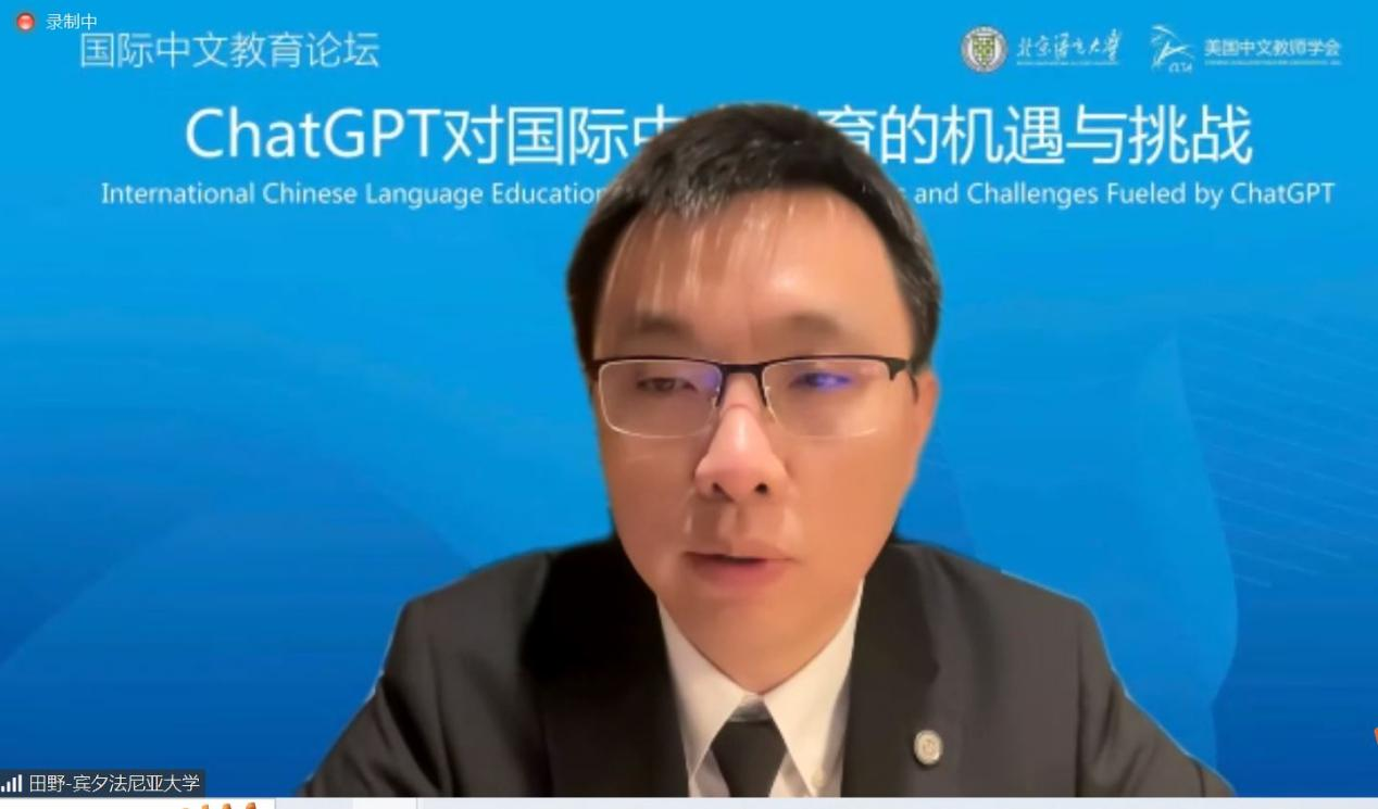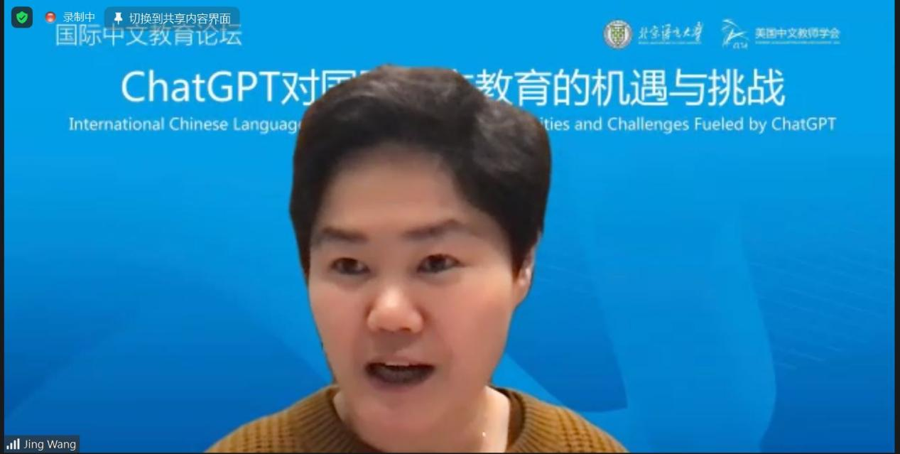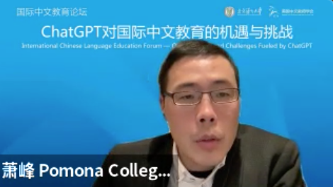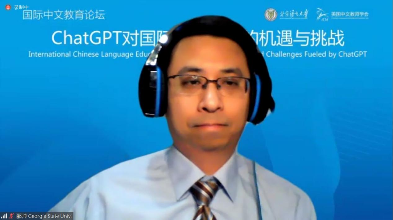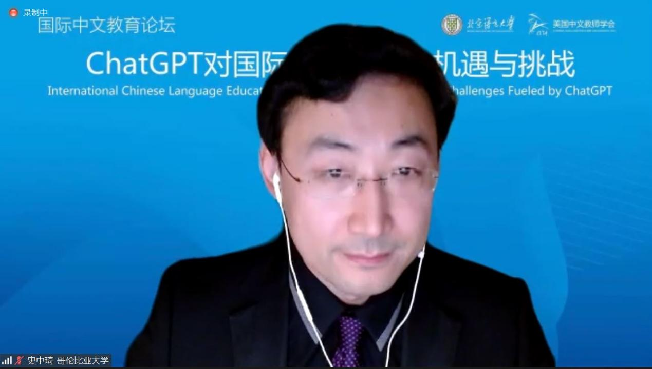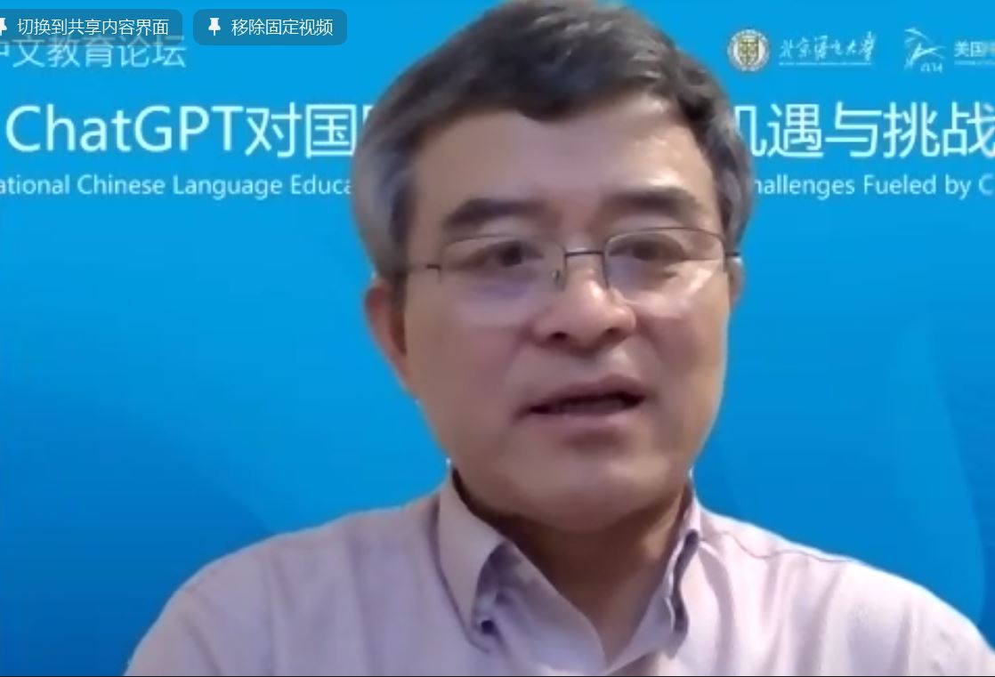 史中琦副会长说,北京语言大学是国际中文教育的排头兵,美国中文教师学会是北美历史最悠久、规模最大、影响力最广的中文教师组织,双方举办的这个论坛是国际中文教育领域首个聚焦ChatGTP的专场讨论,突显了主办双方的前瞻性、行动力以及为学界奉献的精神。他认为,面对新技术的挑战,更深层次的是要面对人们逐渐固化的思维模式、习惯和守成心态的挑战,期待与会的专家和学者们共同探索国际中文教育的未来。