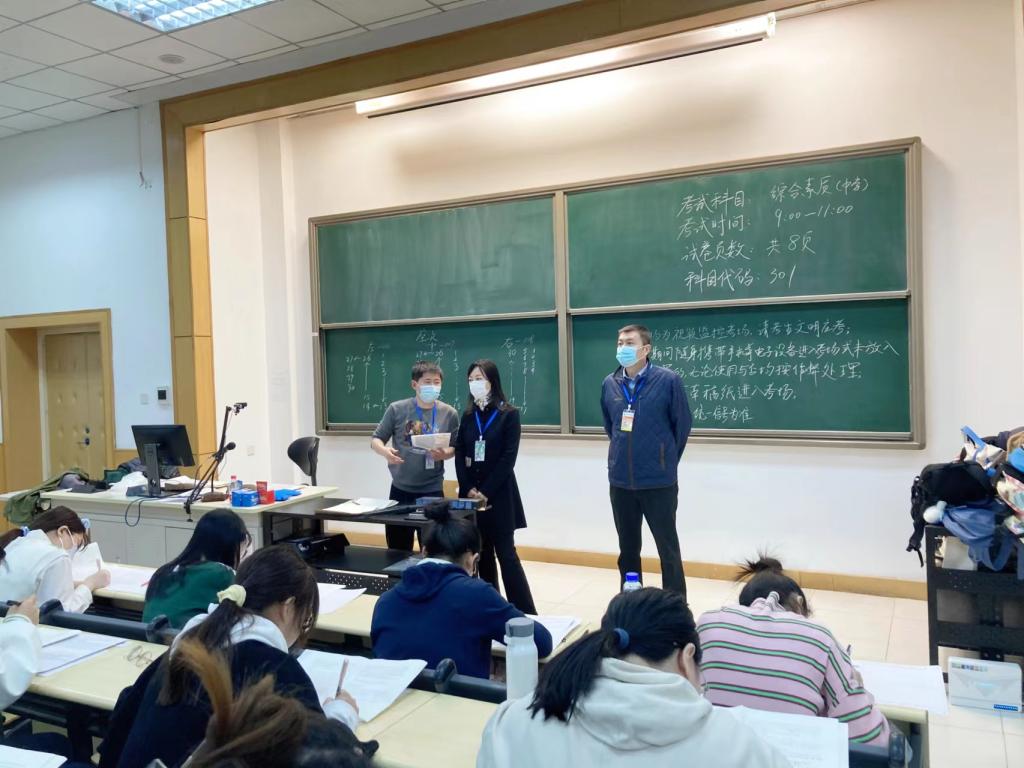 3月11日上午,聂丹副校长到主楼南、主楼北,巡视了考务办公室和教师资格考试的全部考场,慰问了监考员、考务工作人员;12日下午,全国大学英语六级考试期间,聂丹副校长巡视了教五楼、主楼南、主楼北、教一楼、教三楼的26个考场,询问考试的报名情况、组考情况,对考场一一巡视并详细了解了考试环境、考场秩序等相关情况。