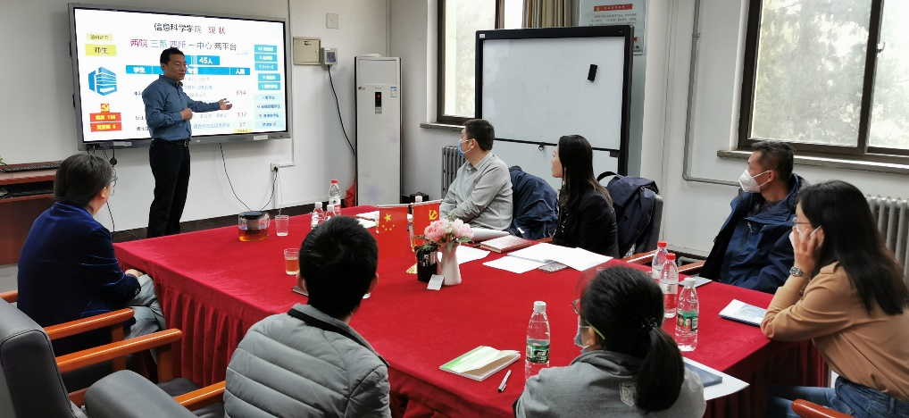 聂丹副校长充分肯定了信息科学学院自成立以来在专业建设、人才培养和教学科研等方面取得的成绩,并对学院工作提出四点建议:一是要主动求变:在人工智能时代突飞猛进的今天,学院要以发展的眼光、开放的胸怀和开阔的视野,紧跟时代步伐,在人才培养目标、培养方案、知识和技能传授等方面主动寻求变革;二是要保持定力:学院要在变革中同时保持定力,要认真研讨学科不变的内核,注重培养学生逻辑思维能力、实践能力等方面的复合能力和综合素质;三是要保证质量:学院要确保教学质量,注重金课建设和效果评估,提高授课质量,争取培育更多教学成果;四是要强化特色:学院应进一步强化特色,依托学校语言、国际化和文理交叉特色,通过特色培养,提高学生核心竞争力,强化人才培养比较优势。