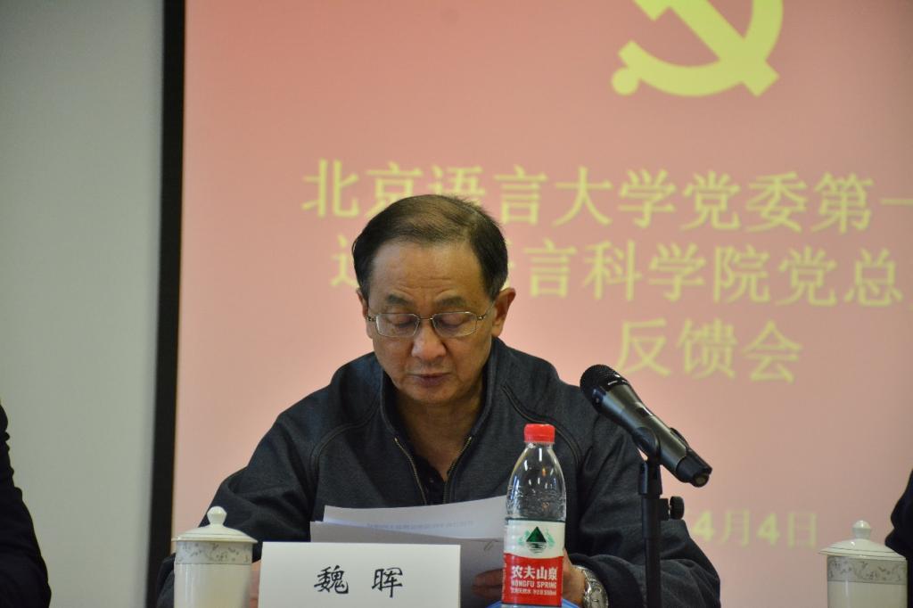 魏晖副书记在讲话中指出,巡察报告经过学校党委常委会的审议,代表着学校党委的意见,语言科学院党总支要切实提高认识,深化巡察整改政治自觉,采取有力举措,推进整改工作落到实处、取得实效。他强调,一要以习近平新时代中国特色社会主义思想为指导。认真学习领会党的二十大精神,深入贯彻习近平关于教育和巡视工作的重要论述,在全面学习、全面把握、全面落实上下功夫,坚持理论联系实际,切实用党的先进理论指导巡察整改工作。二要强化巡察整改的责任意识。把牢巡察整改的政治观、思想观、责任观,树立“整改不力是失职、不抓整改是渎职”的观念,把巡察整改列入年度重点工作,党政负责人要履行好整改“第一责任人”责任,班子成员要把自己摆进去、把职责摆进去,抓细抓实整改工作。三要以高质量党建引领语科院事业高质量发展。强化党总支的政治功能和组织功能,发挥引领带动作用,以党的政治建设为统领,系统推进思想建设、组织建设、作风建设、纪律建设,并将制度建设贯穿始终,推动语言科学院治理体系和治理能力现代化建设,促进事业更快更好发展。