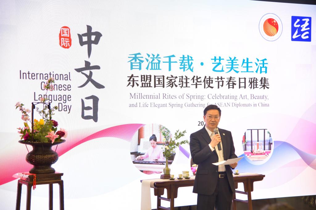 4月15日,“‘香溢千载·艺美生活’东盟国家驻华使节春日雅集活动”在中国—东盟中心的东盟厅举办。作为今年“国际中文日”的系列活动之一,此次活动由中国—东盟中心与教育部中外语言交流合作中心共同主办,北京语言大学中华文化国际传播中心、汉语速成学院和五洲汉风教育科技(北京)有限公司承办。中国—东盟中心秘书长史忠俊先生、语合中心副主任胡志平先生、缅甸驻华大使茂瑞(U Tin Maung Swe)先生、印尼驻华大使夫人艾茜薇(Sih Elsiwi H. Oratmangun)女士,以及来自东盟近十国公使、参赞等二十余位外交官员共同参加了此次活动。中华文化国际传播中心主任苏英霞女士、顾问迟兰英女士也出席了此次活动。