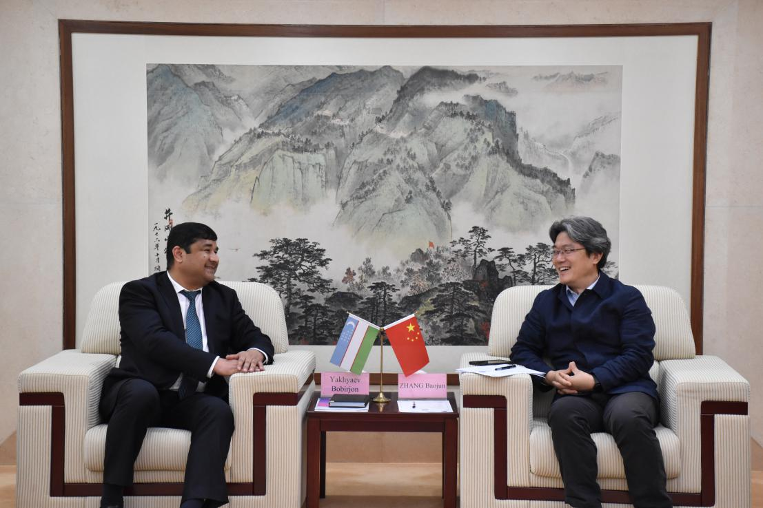 张宝钧副校长对赫亚耶夫•鲍比尔先生和阿米诺夫•大山先生一行的到来表示欢迎。他表示,北语希望能为乌兹别克斯坦培养更多的高水平汉语人才,也希望我校俄语专业同学可以有机会到乌兹别克斯坦交流访学,共同推进一带一路学术研究交流与教师互访,加深中乌高校间教育合作与交流。