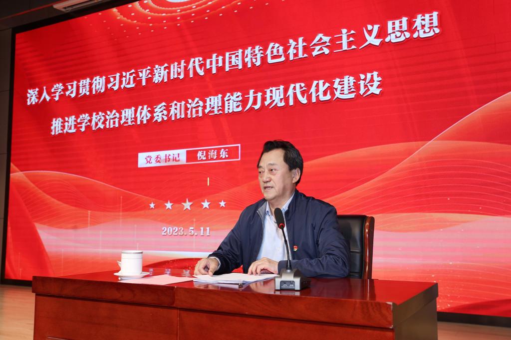 5月11日下午,校党委书记倪海东以《深入学习贯彻习近平新时代中国特色社会主义思想 推进学校治理体系和治理能力现代化建设》为题,为广大党员干部讲授了一堂生动深入的主题教育专题党课。教育部直属高校主题教育第四巡回指导组副组长范迅、成员吴琼同志,校、院两级读书班成员、教工党支部书记等参加学习。校党委副书记魏晖主持。