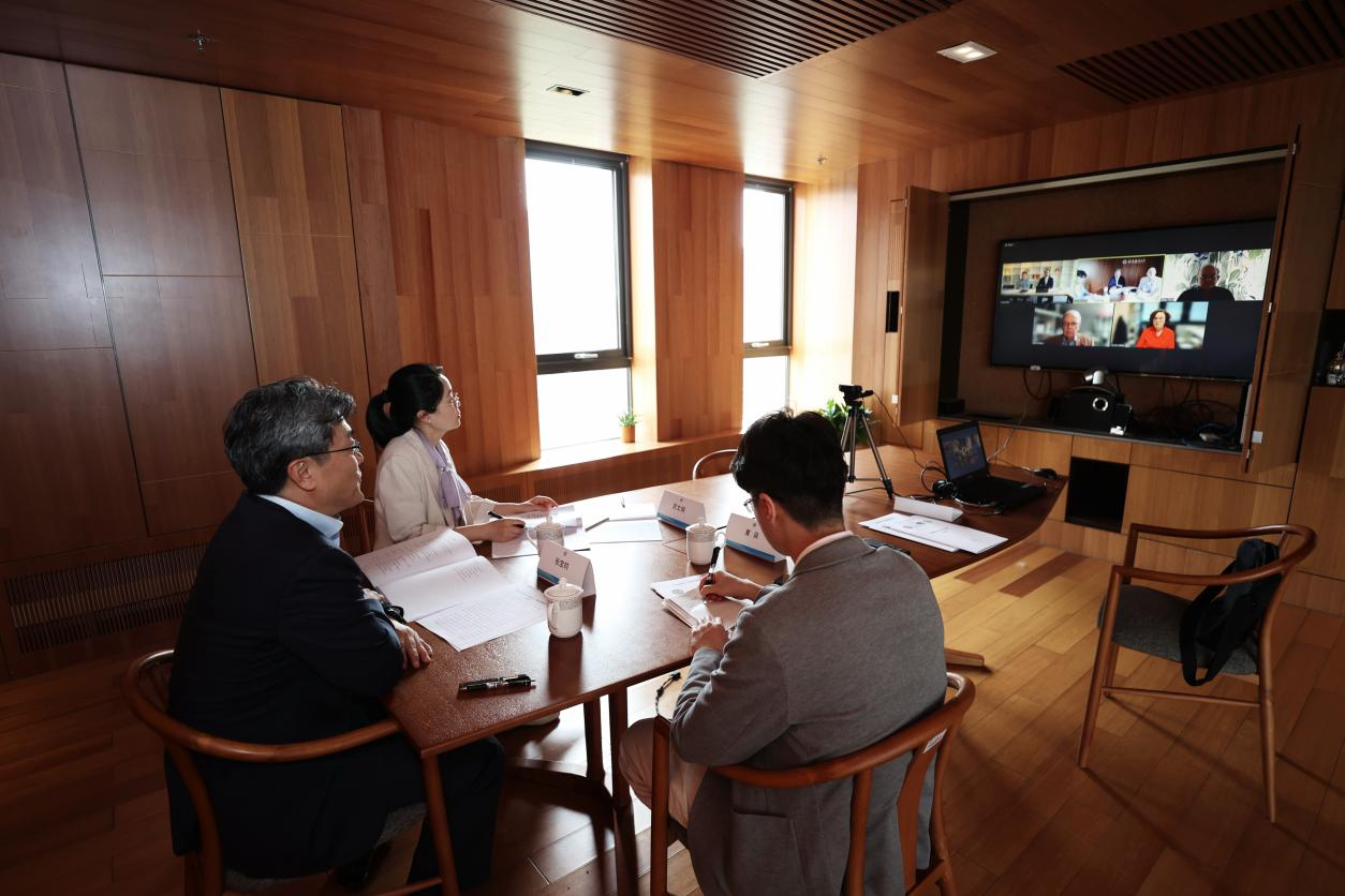 最后,德方全体理事会成员和张宝钧副校长对会议进行了总结。德方理事克里斯塔·穆勒(Christa Müller)教授表示孔院工作推进的很顺利,克服了舆论和疫情压力,希望未来孔院能够持续良好运行。蒂尔曼·迈耶(Tilman Mayer)教授和外方执行院长叶翰识博士都对北语为波恩孔院提供的帮助表示感谢。张宝钧副校长表示愿为波恩孔院提供进一步支持,希望孔院更加聚焦中文教育主业,并希望两校之间的合作更加深入,开展更多校际合作项目,能有更多波恩大学的学生到北语学习,并邀请穆勒教授和迈耶教授来北语讲学。