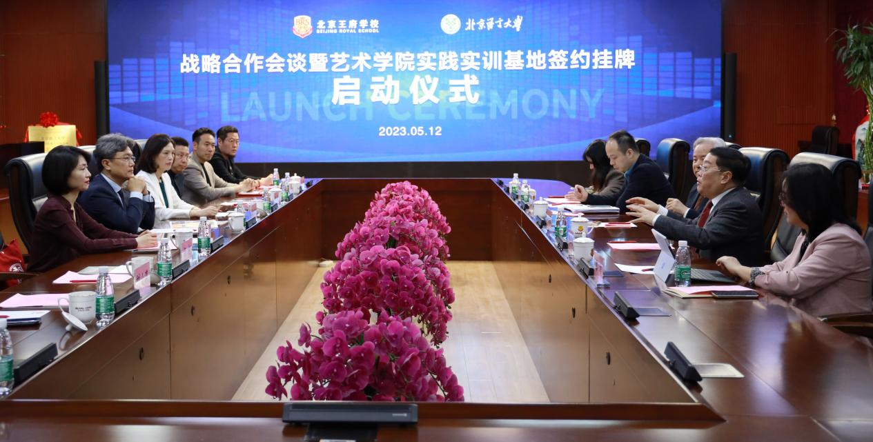 为构建高等教育和中小学教育之间传承中国艺术的桥梁,为青少年搭建学习、表演、传播中国民族音乐的专业平台,5月12日,北京语言大学与北京王府学校开展战略合作会谈,并举办艺术学院教学实习基地签约挂牌仪式活动。此次活动在北京王府学校举行,开启了北京语言大学和国际学校合作的新篇章。