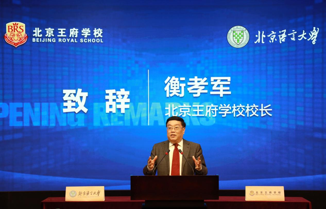 北京王府学校衡孝军校长在致辞中介绍了王府学校近年来的办学成果,并结合特色课程作了重点阐述,衡校长表示,此次与北京语言大学建立战略合作关系,是一个良好的开端,双方将秉持合作共赢、资源共享、共同发展的原则,积极推动艺术教育的创新与发展,培养具有音乐专业素养和综合能力的人才,同时为学生提供更多教育教学的实践和学习机会。