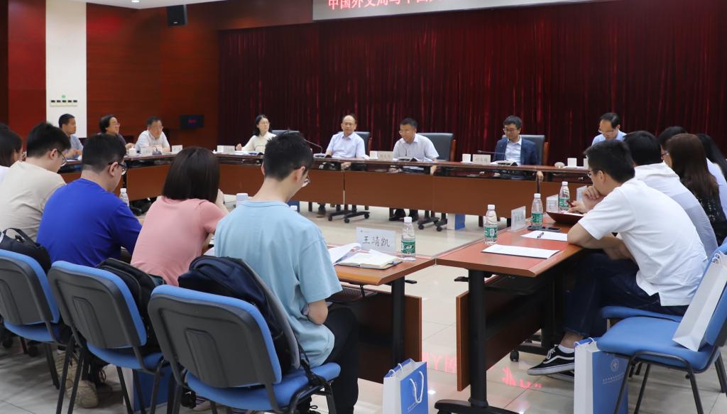 正值深入学习贯彻习近平新时代中国特色社会主义思想主题教育阶段,我校与中国外文局联合联合培养区域国别学、翻译学博士工作调研交流会于5月16日下午在外文局综合楼小礼堂举行。中国外文局副局长刘大为出席会议,外文局当代中国与世界研究院院长于运全、外文出版社副总编辑丁志涛以及人事部相关负责同志与会,我校校长助理、研究生院院长郭鹏、外国语学部书记罗林、主任高明乐,研究生院副院长吴毅和我校参加联合培养项目的博士生参加会议。