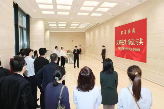 国家主席习近平在参观“友好往来命运与共——党和国家领导人外交活动礼品展”时强调:“党和国家领导人外交活动礼品具有特殊的历史价值和丰富的人文内涵,凝聚着中国人民同世界各国人民的深厚情谊,也见证着新中国外交事业的辉煌成就。”通过本次参观学习,读书班成员深刻感受到了人类命运共同体的深刻意义、丰富内涵以及“国礼”的精美,在这些刻有时代烙印的档案文献和珍贵礼品上,记载了中国共产党建立、成长的曲折过程,记录了新中国成立的重要历史时刻以及改革开放迈入新时代的伟大成就,彰显了礼仪之邦的大国风范和领导人在国际社会的崇高威望及人格魅力。