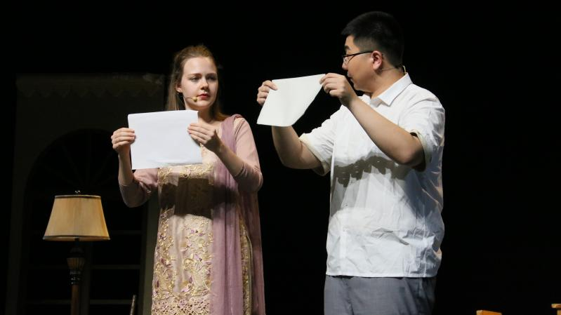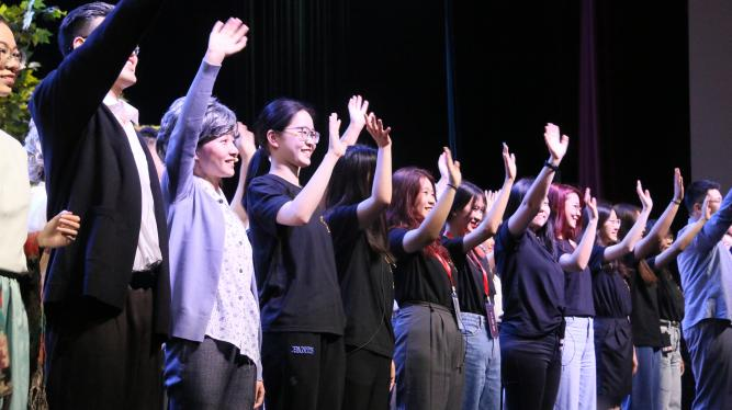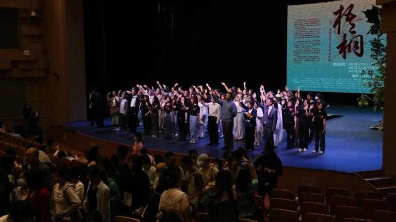 话剧谢幕时,北京语言大学校歌响彻全场,现场掌声雷动。