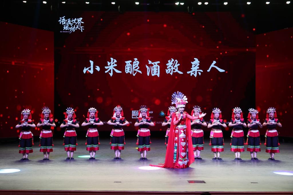 由瑶族歌唱艺术家蒙鹏君带来歌曲《瑶家妹》和用瑶语演唱的《小米酿酒敬亲人》,来自瑶族的客人将特色葡萄汁献给现场观众,表达促进民族间沟通交流的美好愿景。