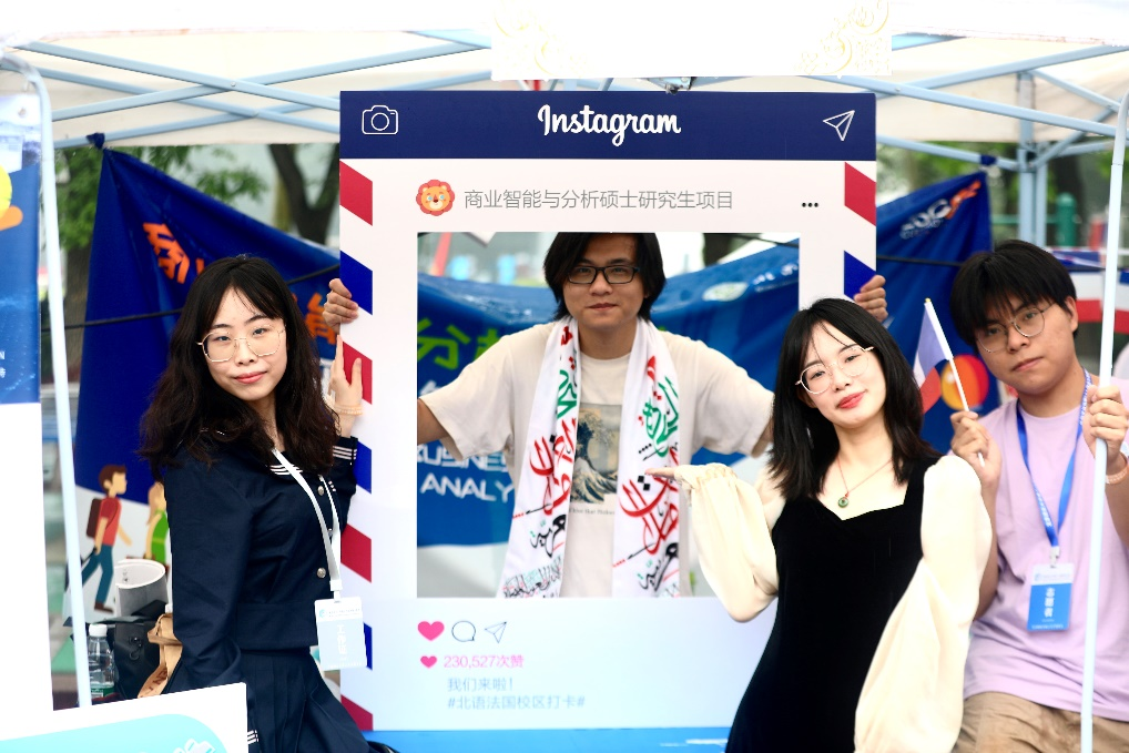 中英文化遗产发展项目和中法商业智能与分析项目展台的展示信息详细介绍了各自项目的办学理念、办学特色、课程设置和和未来职业发展等信息,为有志报考的学生提供了深入了解项目情况的平台。