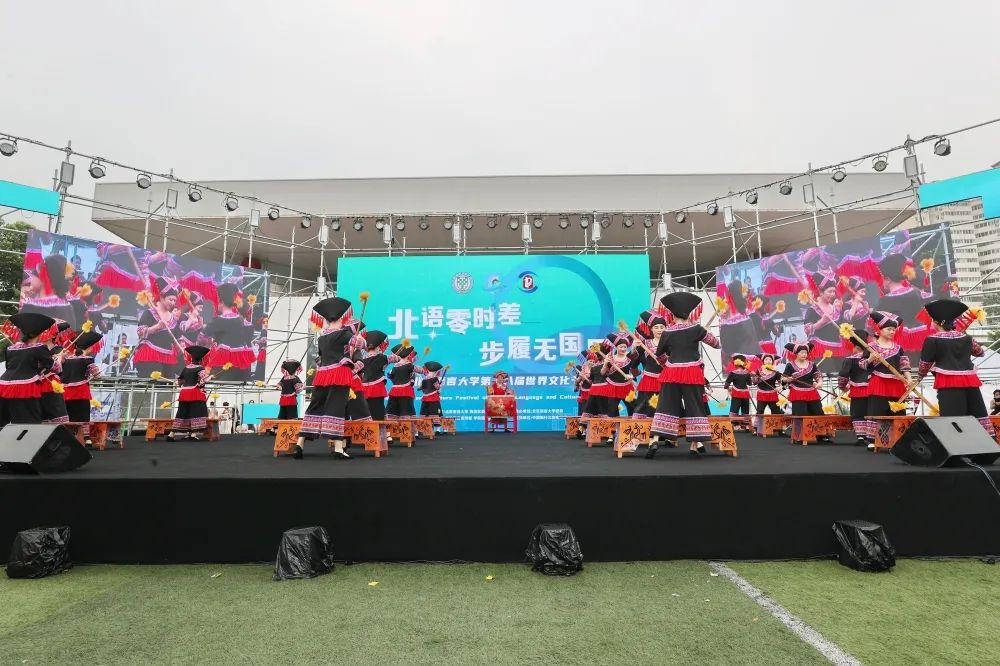 在文化节开幕式上,都安的客人穿着特色民族服饰为中外师生表演了非遗节目《壮族打扁担》,不久前都安的《壮族打扁担》成功入选第五批国家级非物质文化遗产代表性名录,此次演出为推动都安非遗文化的保护、传承和发展工作,打响都安文化旅游品牌,助力都安乡村振兴发挥了积极作用!