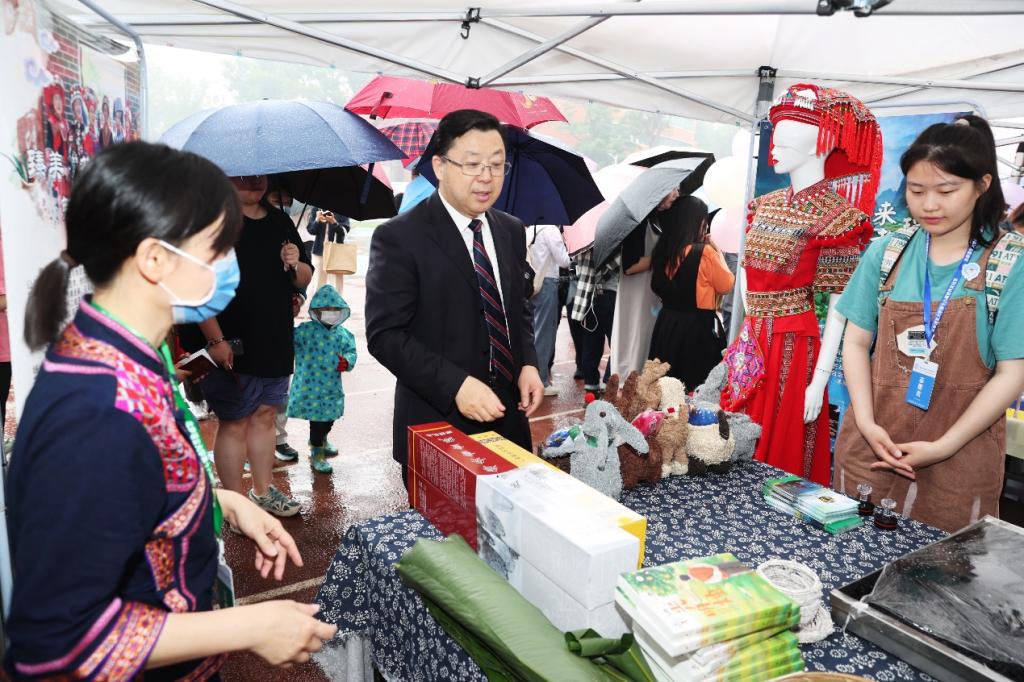 5月27日,我校第十八届世界文化节盛大开幕,我校定点帮扶县广西都安瑶族自治县受邀参加,都安非遗文化和特色农产品首次亮相世界文化节。