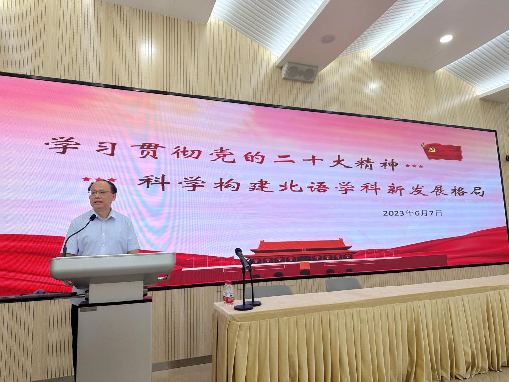 郭鹏部长以“学习贯彻党的二十大精神,科学构建北语学科新发展格局”为题进行了报告。围绕着党的二十大报告内容进行了阐释,指出高校人才培育工作的重要战略性意义。随后他结合主题教育相关内容与我校研工队伍工作实际,提出要做到“学思用贯通、知信行统一”,各辅导员要坚持以学铸魂、以学增智、以学正风、以学促干,提升工作实效。