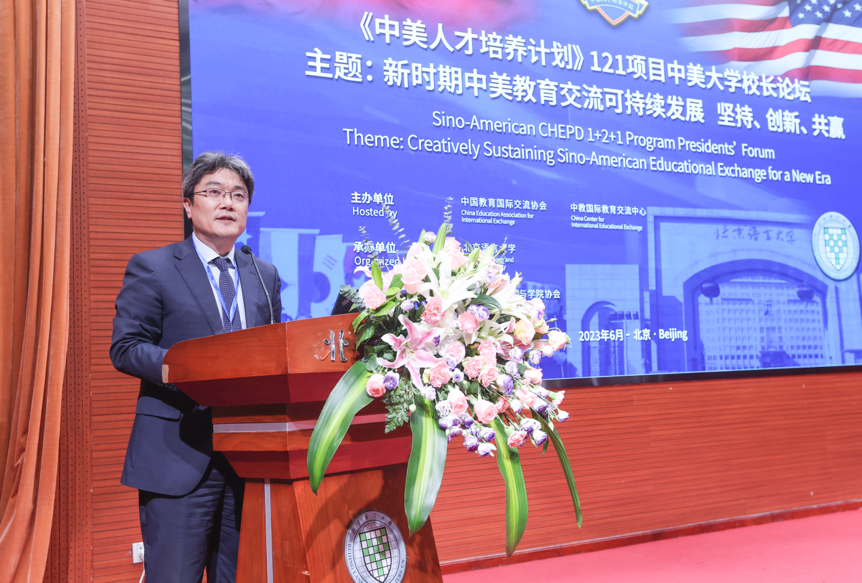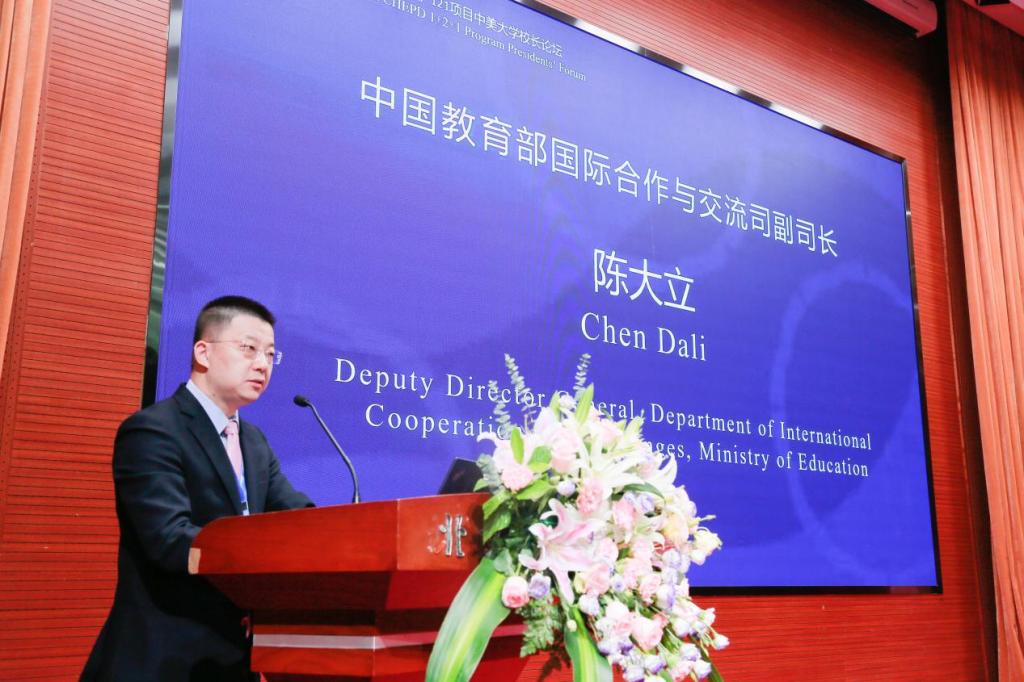 陈大立副司长在致辞中指出,《中美人才培养计划》121项目是中美人文交流的典型项目,22年来,项目经历了中美双边关系的起起伏伏,展现了令人钦佩的发展韧性和强劲生命力。中美大学要坚定交流合作的信心,持续开拓创新、不断丰富合作内涵和实质,中美双方要合作共赢,让教育成为促进中美两国人民相互理解的桥梁和纽带,推动中美关系重回健康稳定发展轨道。