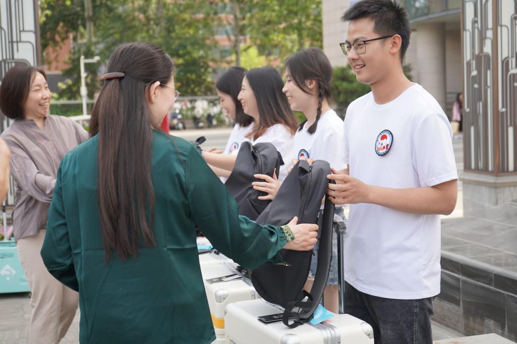 仪式上,各学部院系领导老师为第25届研究生支教团发放保障品。