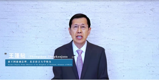 泰王国前副总理、北京语言大学校友王篷贴以自己在大学毕业走上工作岗位后,发现需要一直努力学习为例,告诉毕业生们在这个变化迅猛、难以预测的时代,终身学习是必需的,要成为自己的教育者。他希望毕业生们担起全球公民的共同责任,努力在消除不平等、保护环境、维护世界和平等方面承担起共同的责任。