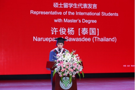 硕士留学生代表、来自泰国的许俊杨说,在母校接触到了前沿的知识和最新的思想,收获了专业技能和人生阅历。尤其是通过学习汉语语言文化,深刻认识到文化交流的重要性,更加坚定了学习汉语和中华文化的决心。