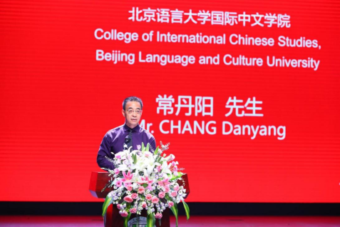 在北语任教三十多年的教师代表常丹阳老师分享了父母和他奉献国际中文教育事业的感人故事。他的父母是老一辈的北语教师,敬业严谨、认真执教。30年前,他的母亲病倒在巴基斯坦一所大学的汉语课堂上,把生命的最后时光交给了一生热爱的事业。住院期间,巴基斯坦的学生们轮流探望、守护,排起长队献血,彰显了跨越国界的师生情谊。他希望毕业生们能用所学促进中外友好,事业有成!