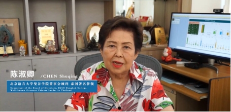 北京语言大学曼谷学院董事会顾问、泰国著名侨领陈淑卿勉励毕业生们把学到的汉语和各项知识及技能运用到今后的生活和工作中,争取更大的进步。她说,世上到处都是知识,人生中也有很多机会,要加以选择,正确合理地使用。