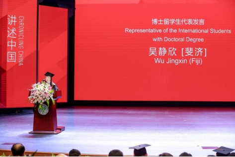 博士研究生代表、来自斐济的吴静欣说,在母校不仅收获了专业知识和研究技能,更重要的是培养了坚持不懈的毅力、批判思维的能力以及团队合作的精神,并了解了不同国家和地区的文化,与不同肤色、不同民族和不同文化的人成为朋友。
