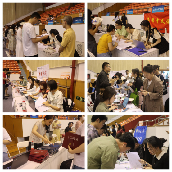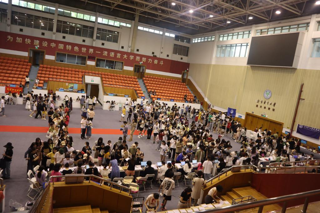 6月30日,北京语言大学2023届毕业生离校工作在逸夫体育馆举行,黄益方副校长莅临离校现场指导工作。当天下午,学校学生处、研究生院、保卫处户籍科、信息化办公室、校友工作办公室以及各本科生、研究生培养单位现场办公,为毕业生注销学生证、发放毕业材料、解答离校手续问题等,为毕业生离校做好服务。离校过程顺序井然,毕业生于离校现场领取毕业材料、咨询就业等手续,并于出口处校友工作办公室展台了解各地校友会情况。
